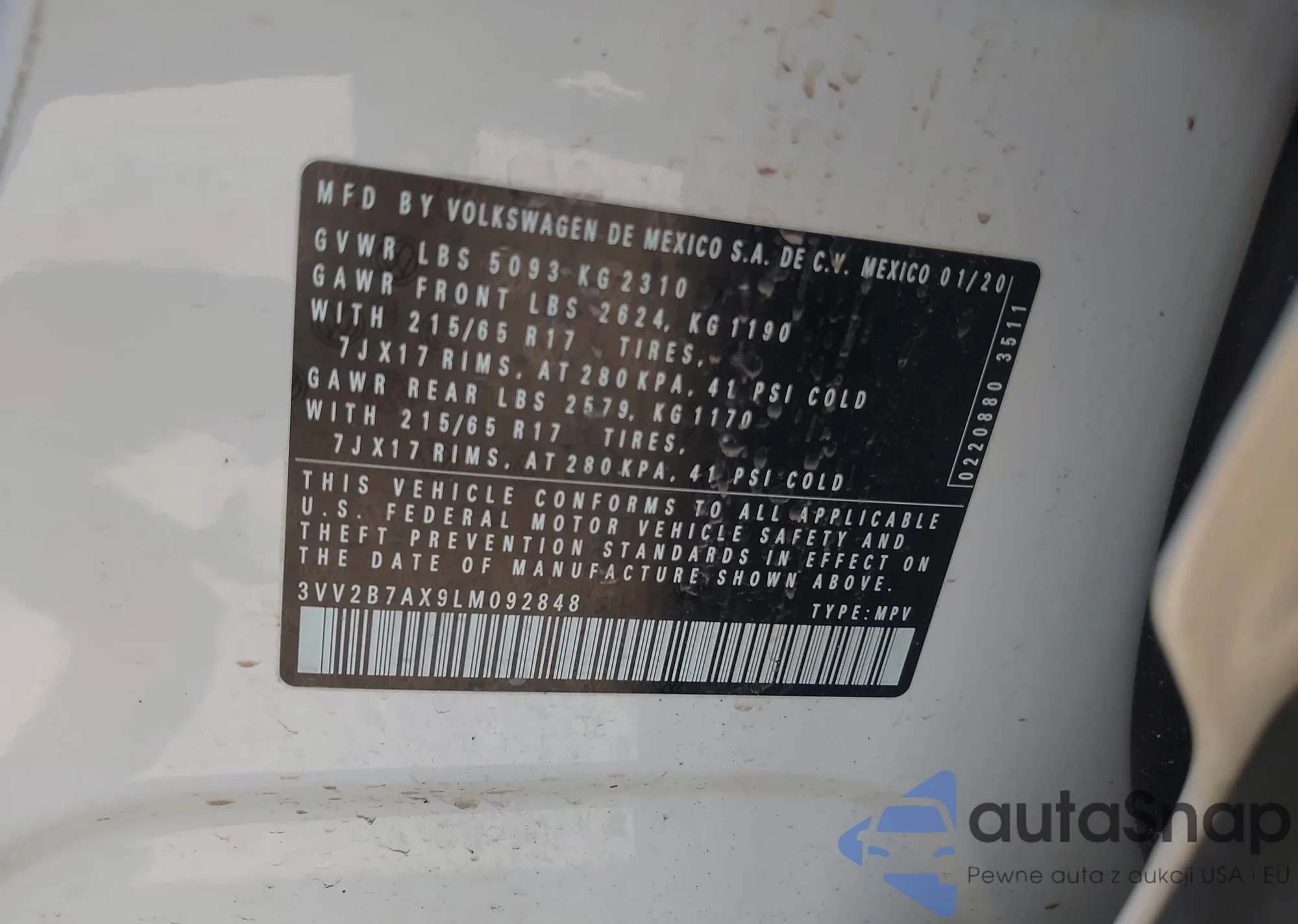 VIN: 3VV2B7AX9LM092848