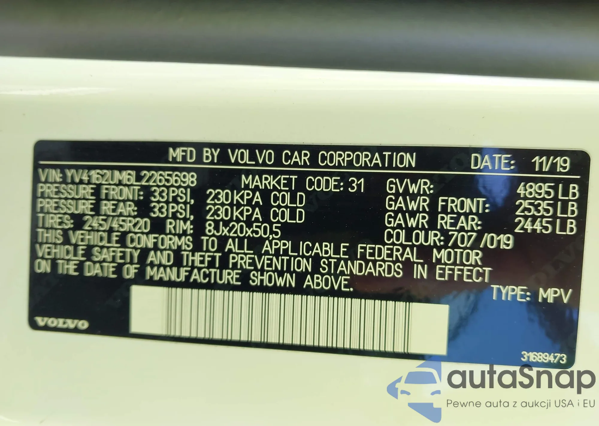 VIN: YV4162UM6L2265698