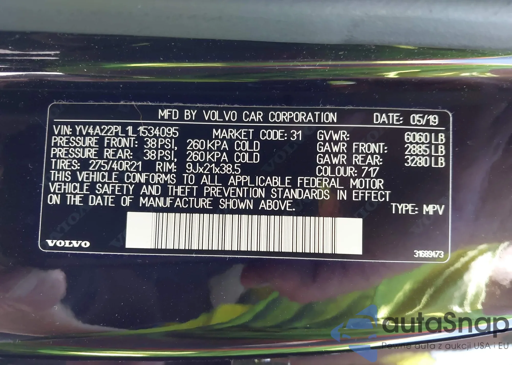 Samochód Volvo XC90 2020 (VIN YV4A22PL1L1534095) nie był wcześniej licytowany (0 aukcji). Dokumenty są czyste, przebieg odpowiada lub jest niższy niż średnia rynku. Sprzedaje go firma ubezpieczeniowa – polecamy zakup. Dostawa do portu zajmie ok. 6–8 tygodni.
