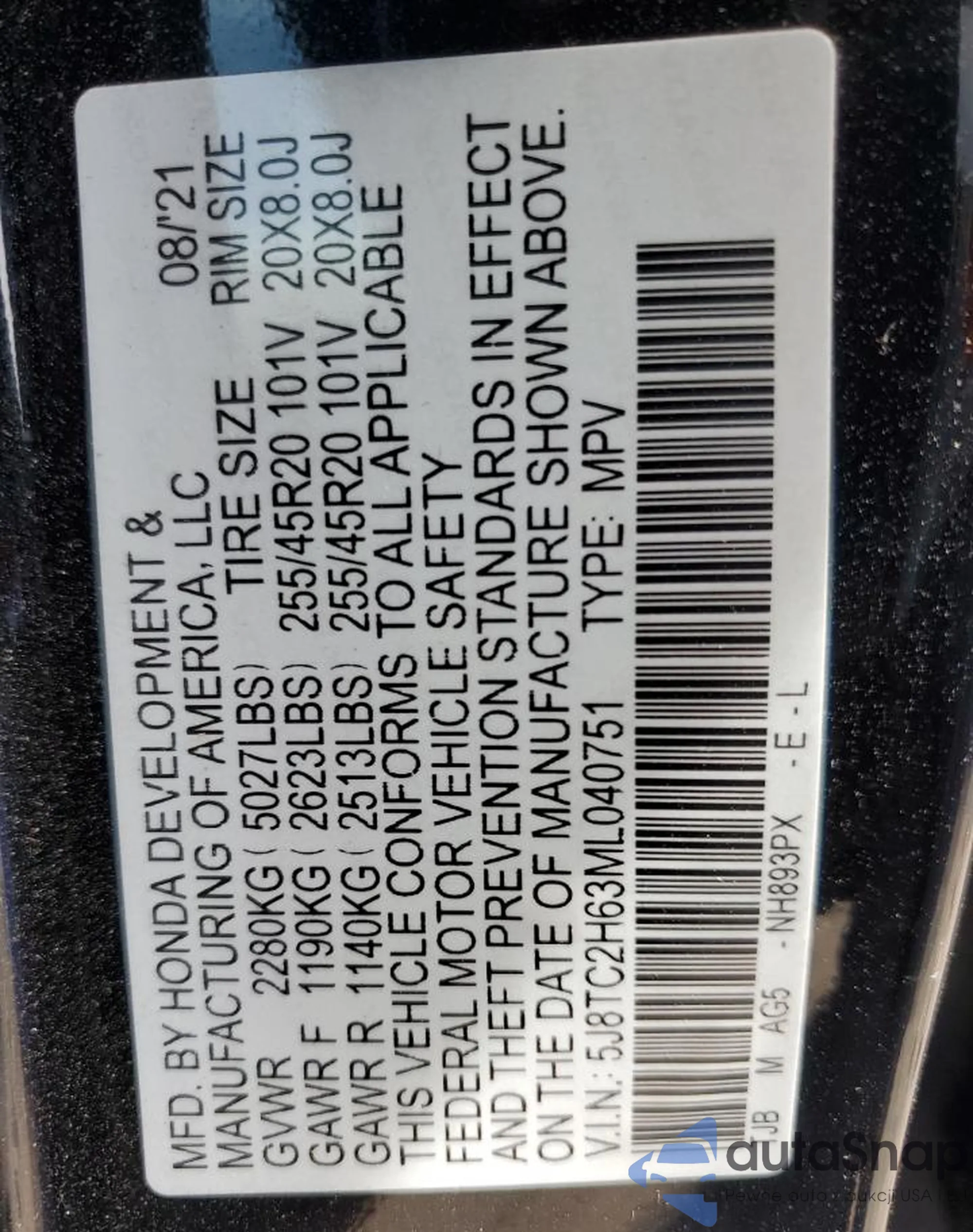 VIN: 5J8TC2H63ML040751