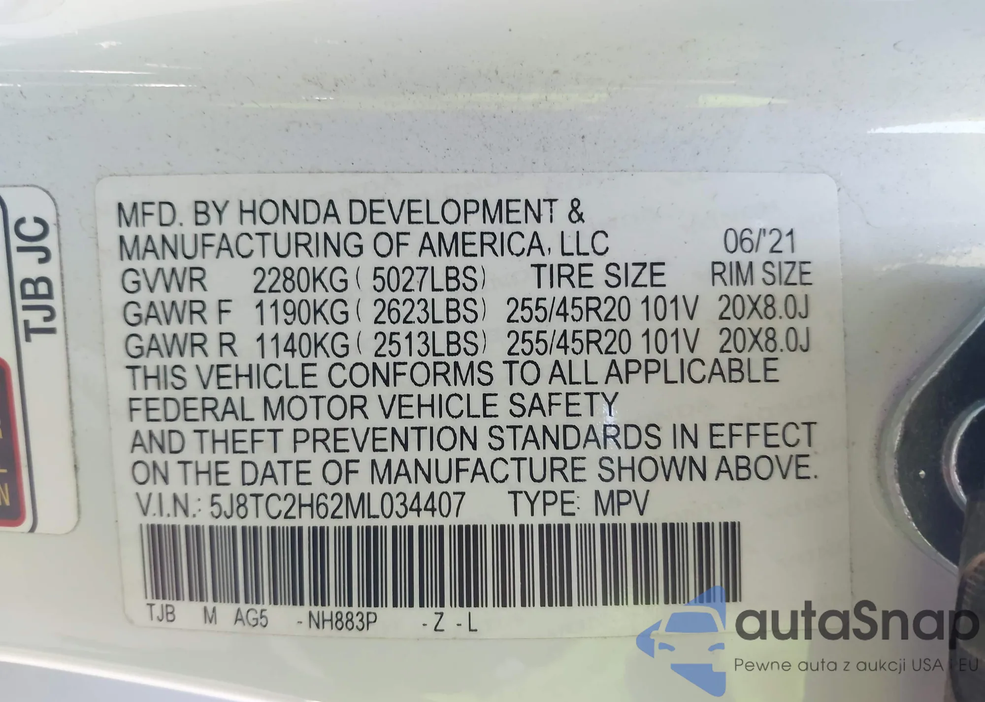 VIN: 5J8TC2H62ML034407