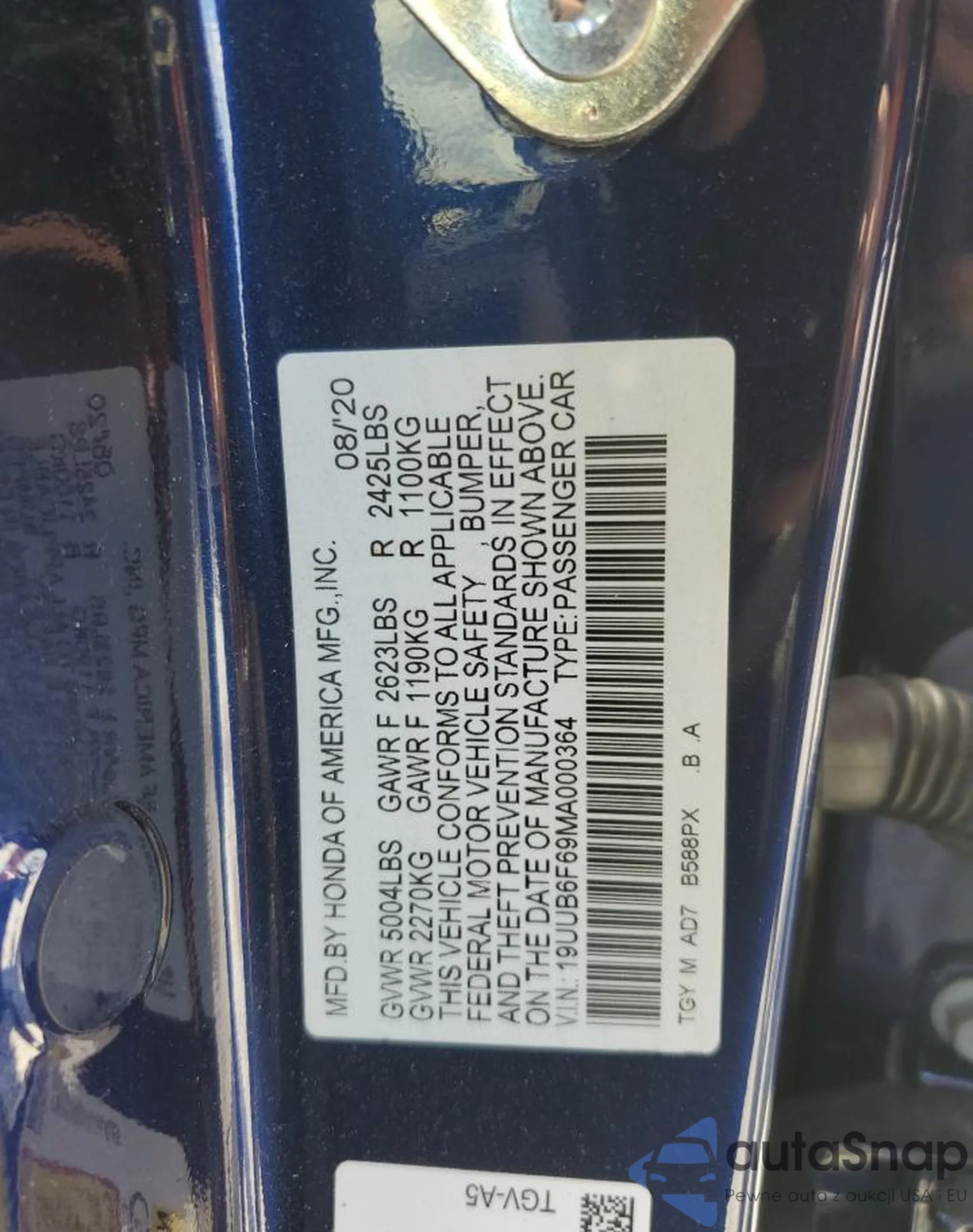 VIN: 19UUB6F69MA000364