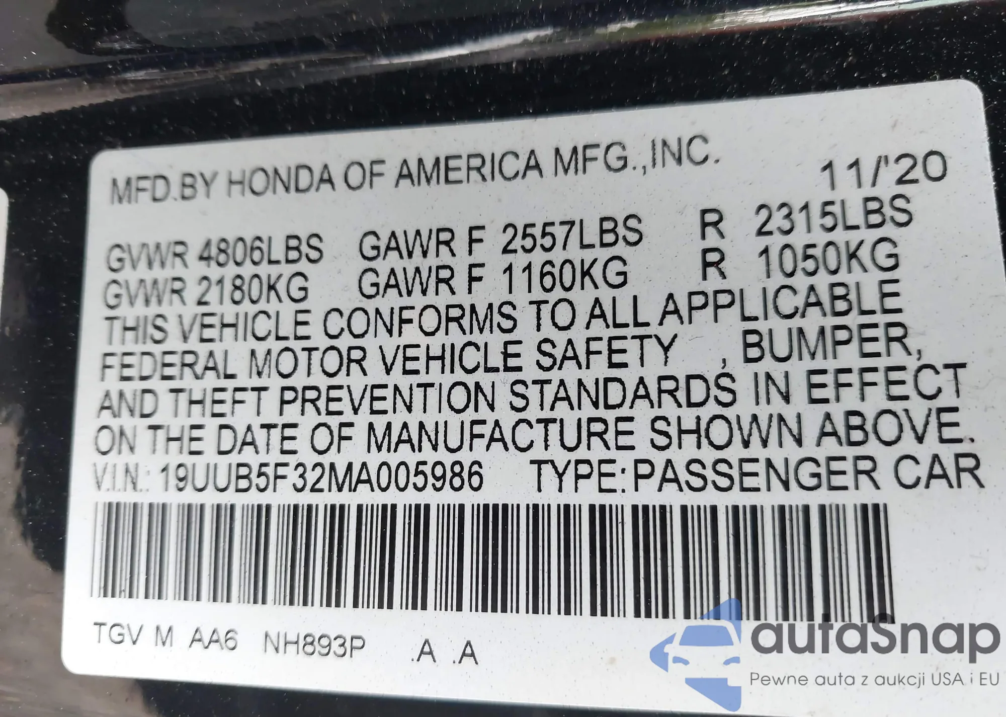 VIN: 19UUB5F32MA005986