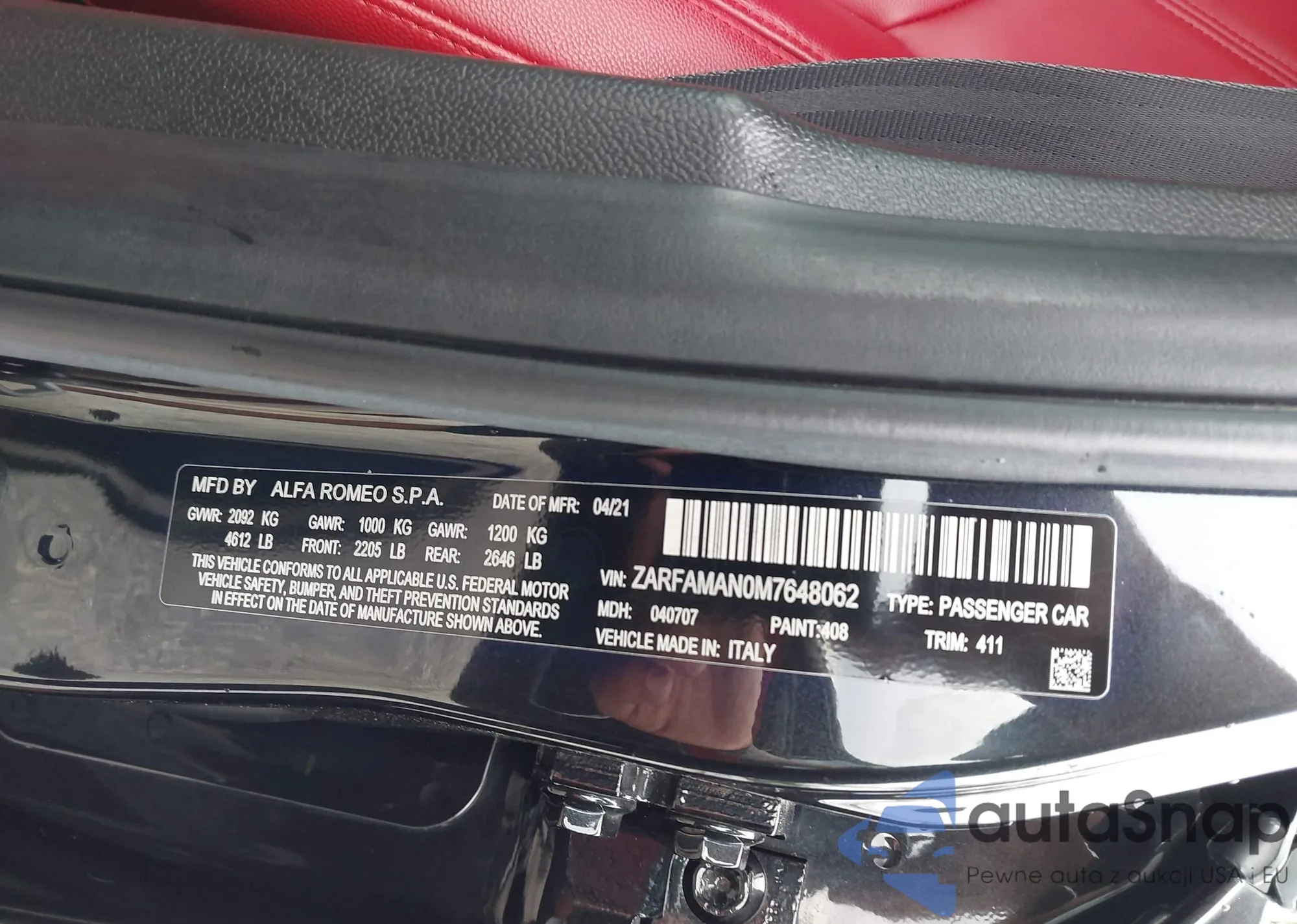 VIN: ZARFAMAN0M7648062