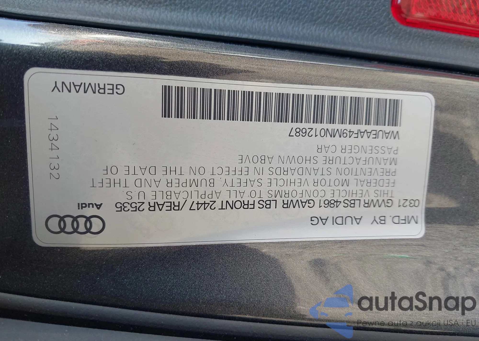 • VIN: WAUEAAF49MN012687