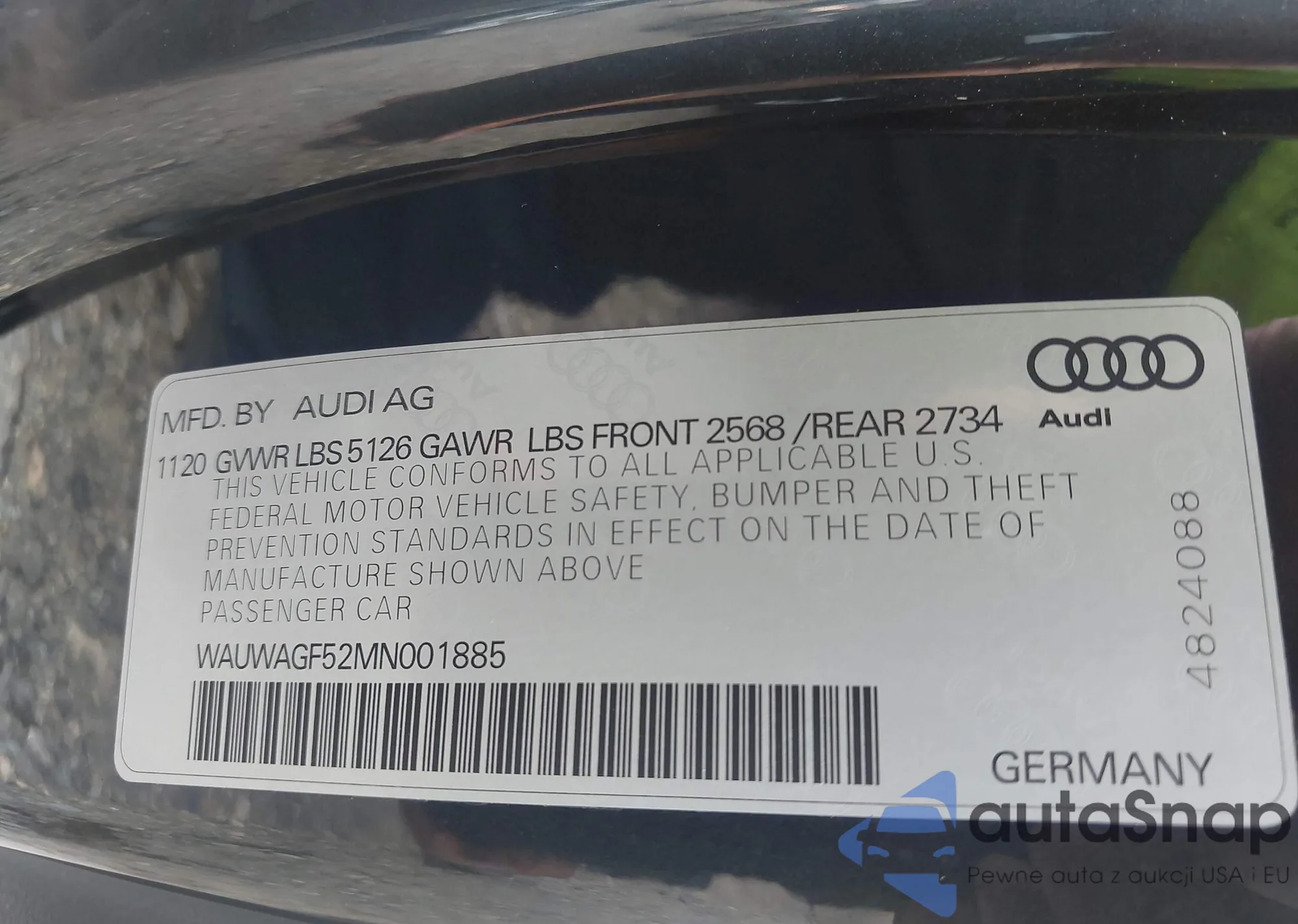 VIN: WAUWAGF52MN001885