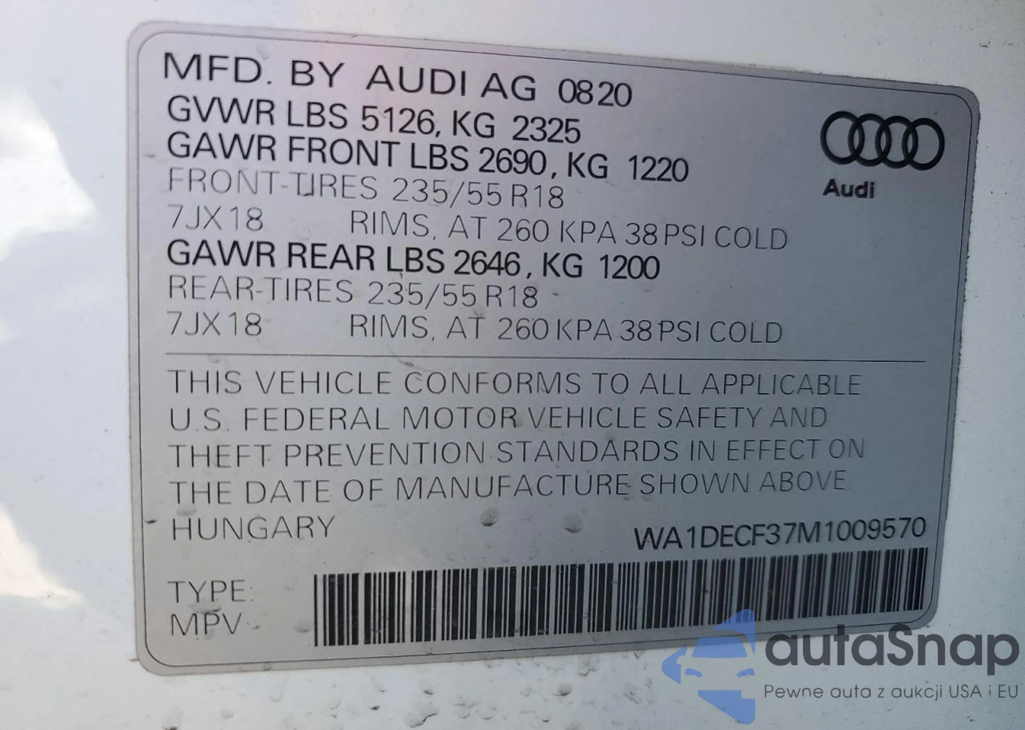 VIN: WA1DECF37M1009570