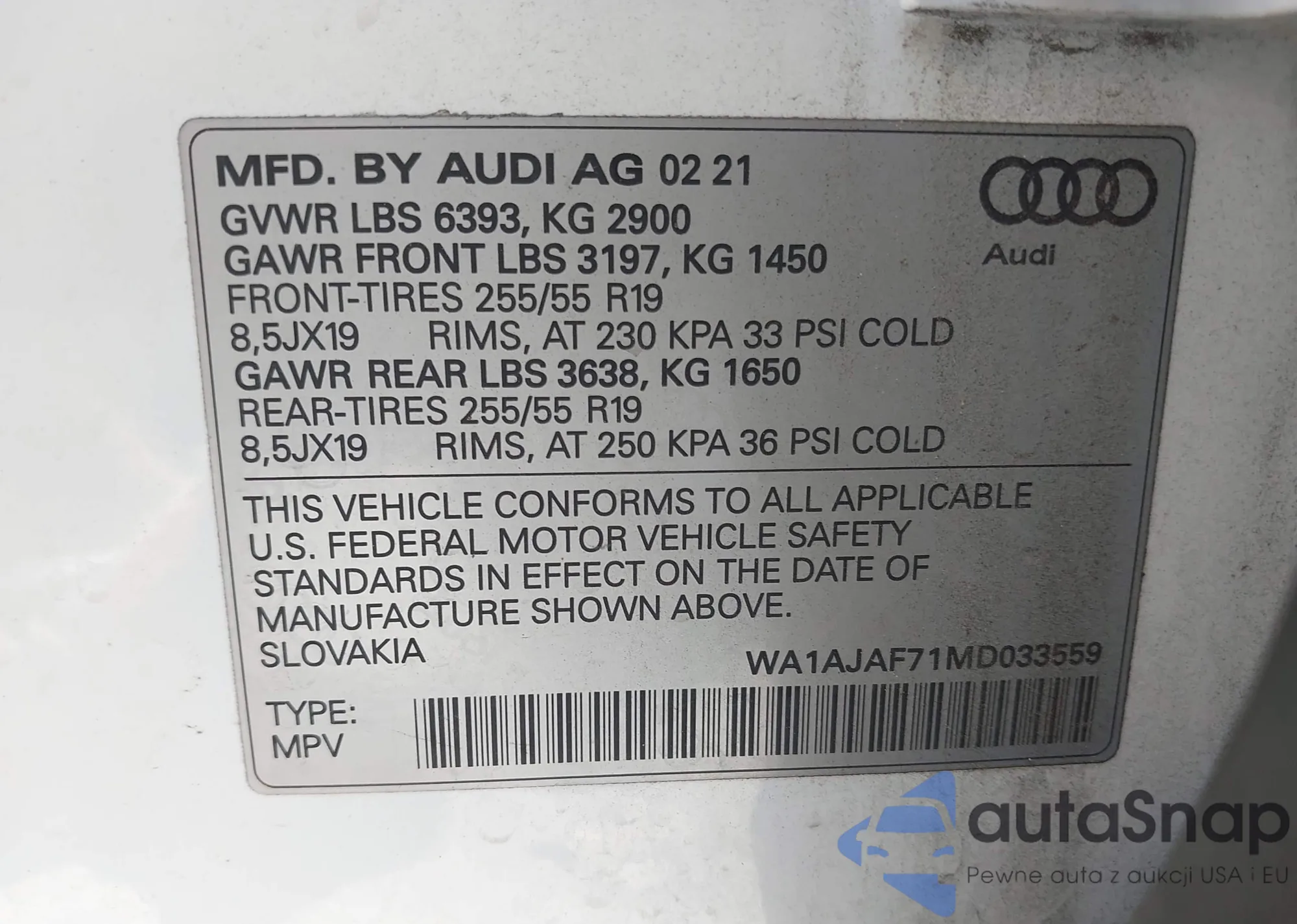 VIN: WA1AJAF71MD033559