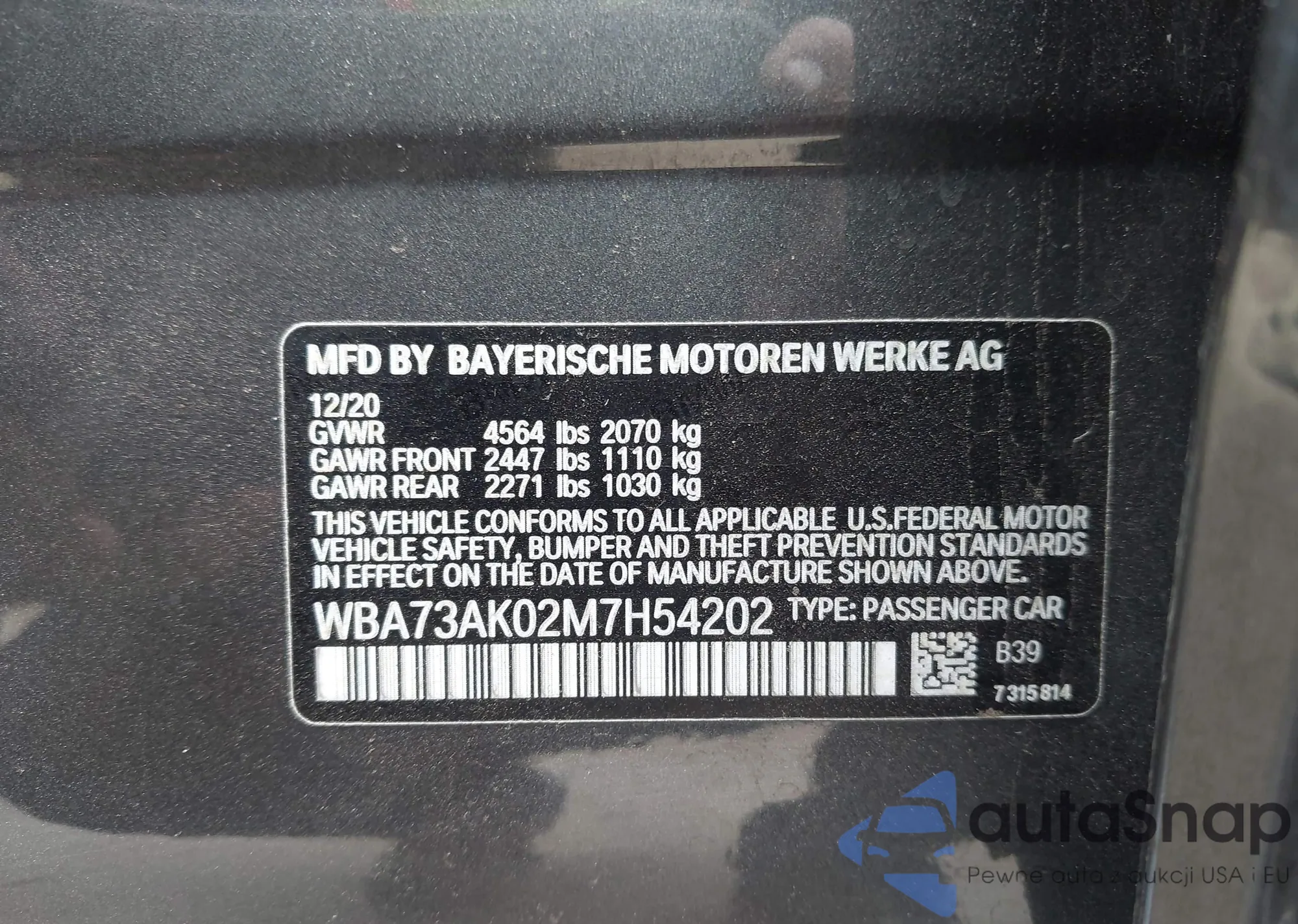 VIN: WBA73AK02M7H54202