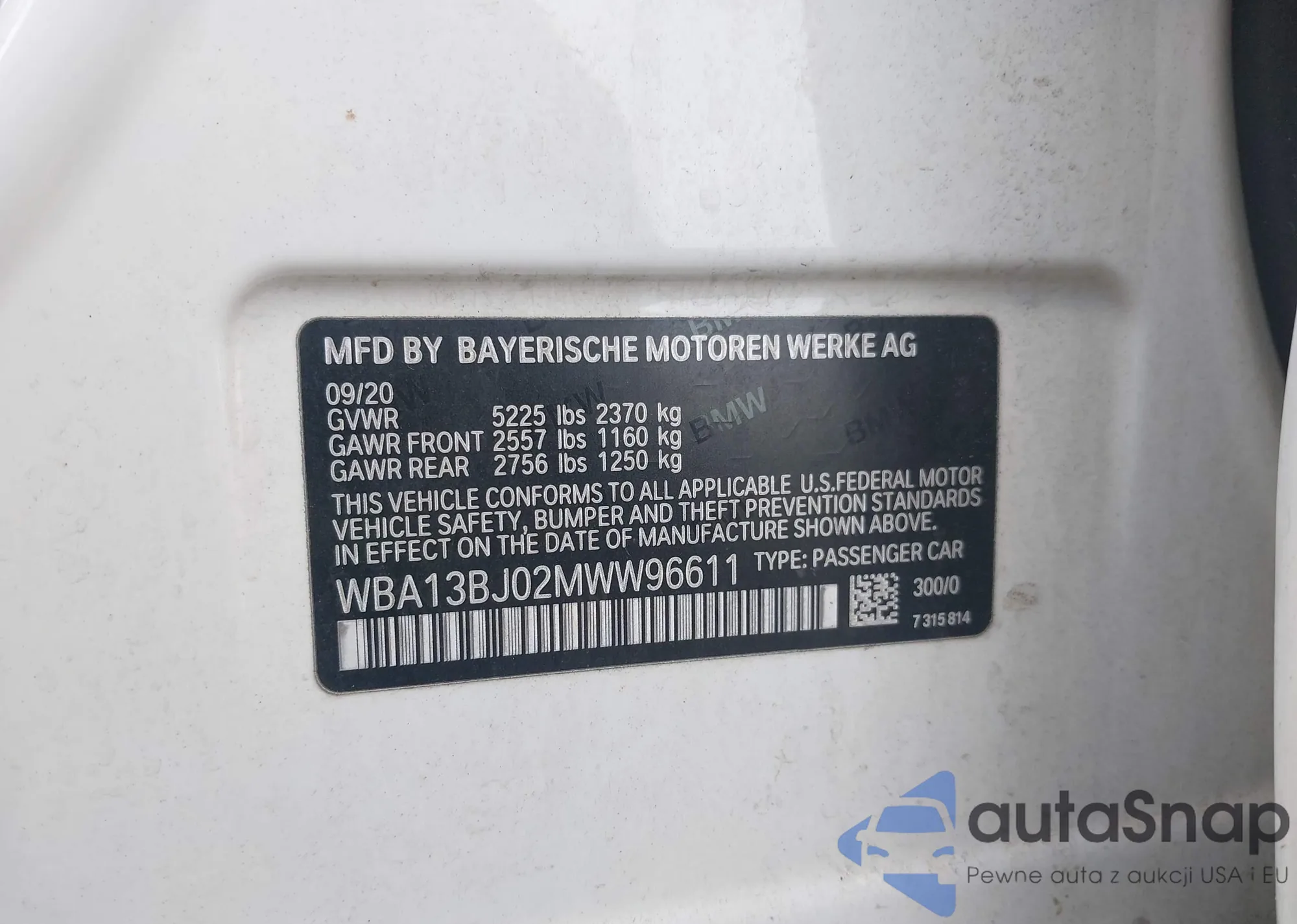VIN: WBA13BJ02MWW96611