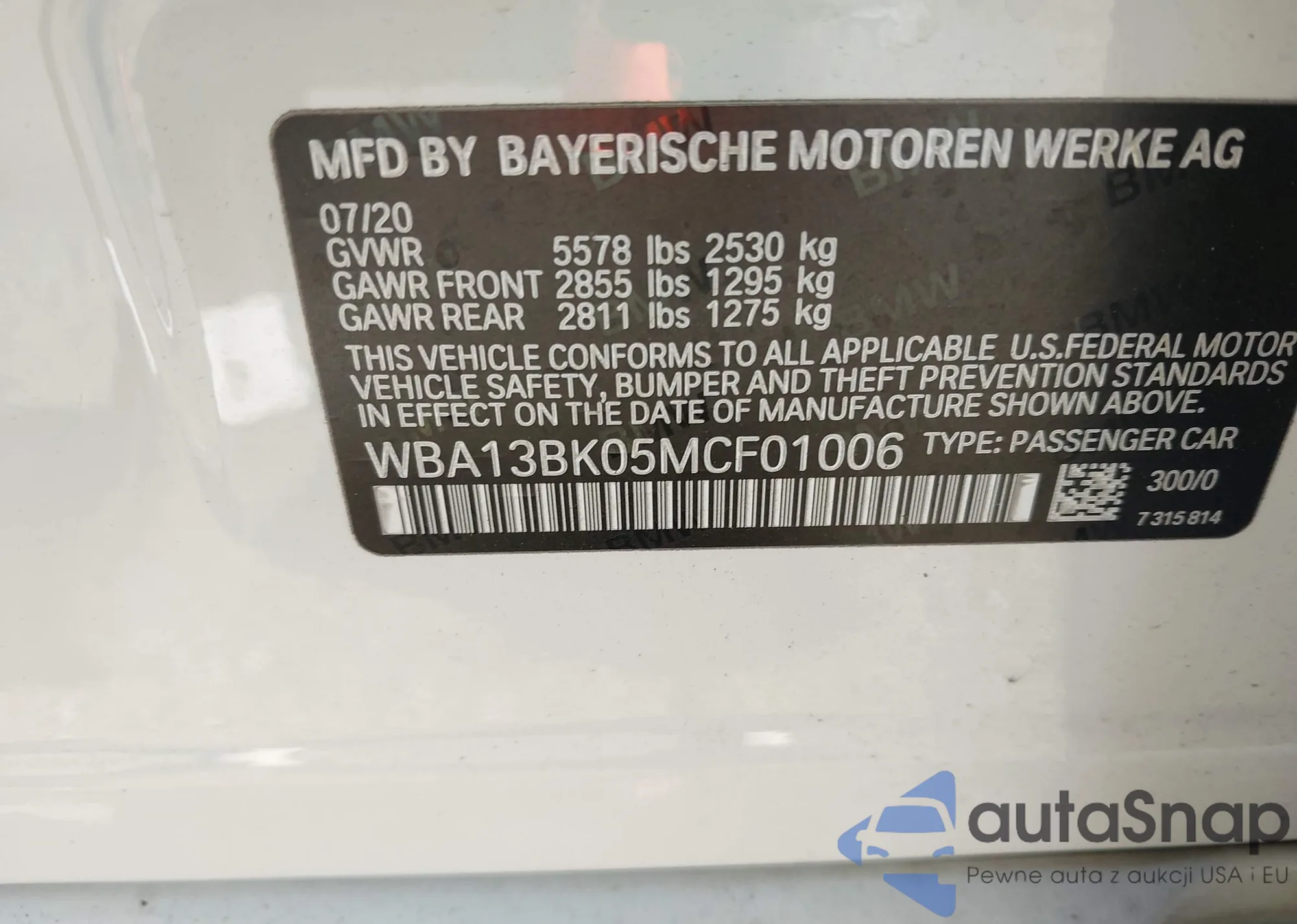 VIN: WBA13BK05MCF01006