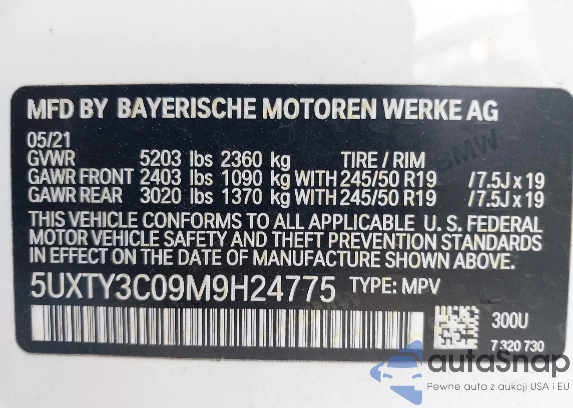 • VIN: 5UXTY3C09M9H24775
