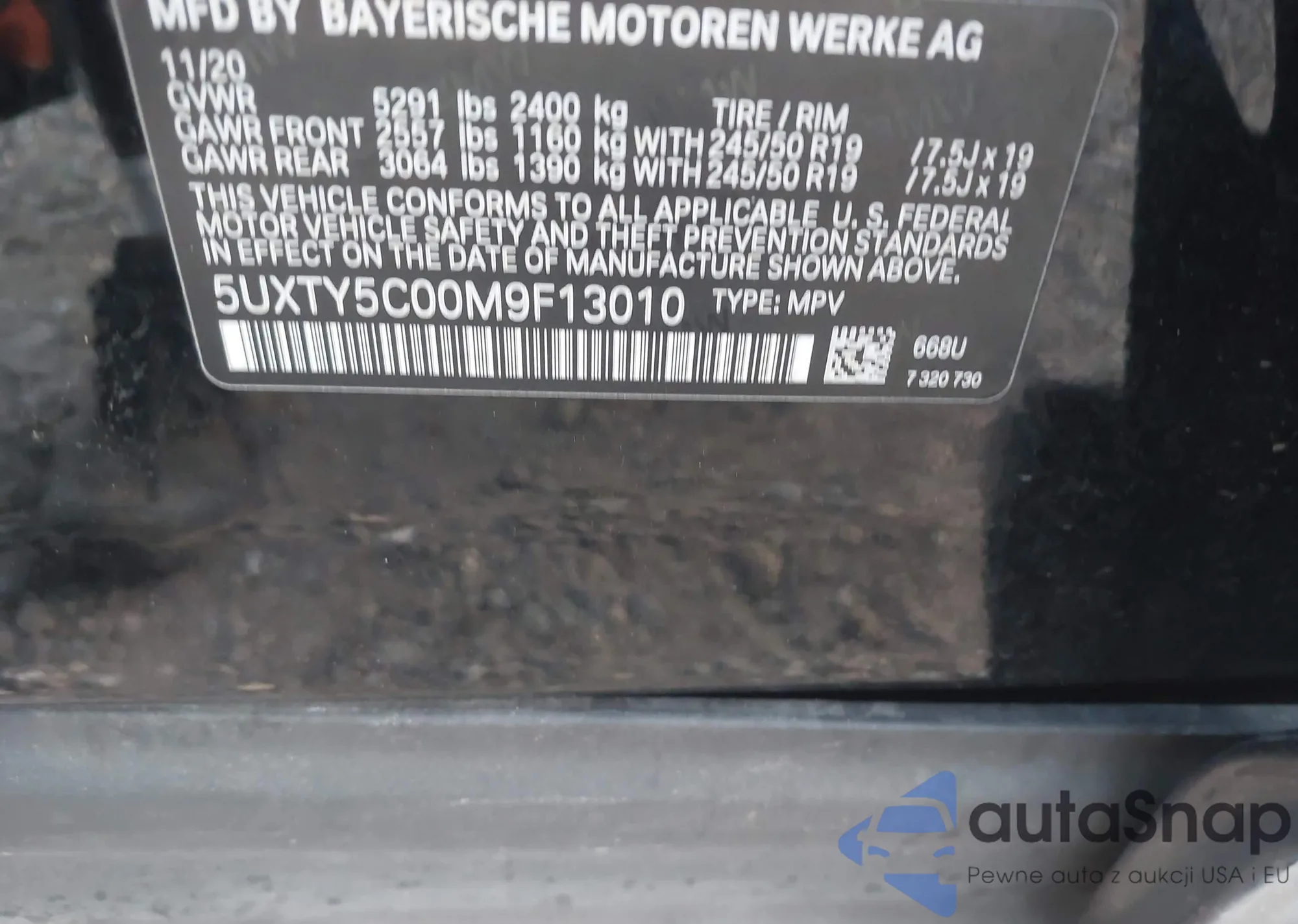 VIN: 5UXTY5C00M9F13010