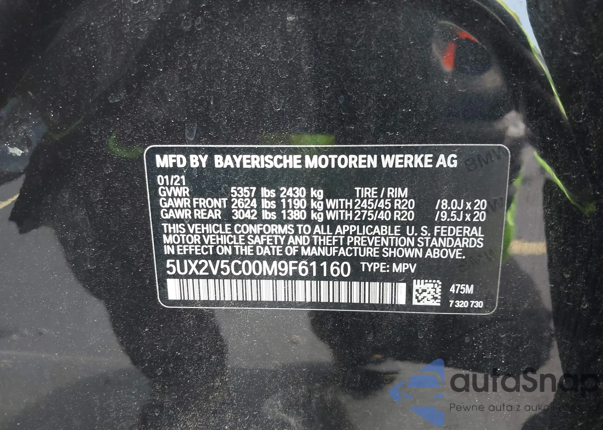 Samochód BMW X4 2021 (VIN 5UX2V5C00M9F61160) ma dokumenty uniemożliwiające rejestrację. Mogą pojawić się trudności przy eksporcie i rejestracji. Skontaktuj się z ekspertami AutaSnap w celu znalezienia alternatywy.