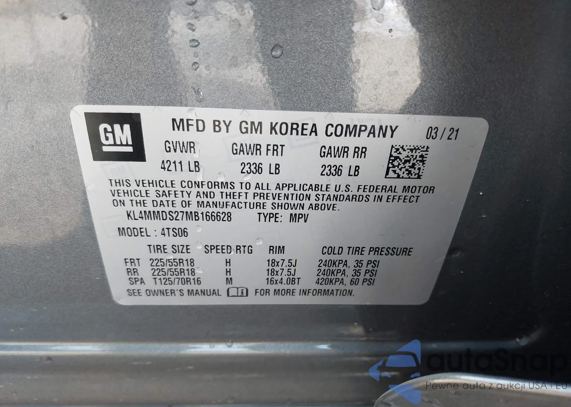 • VIN: KL4MMDS27MB166628