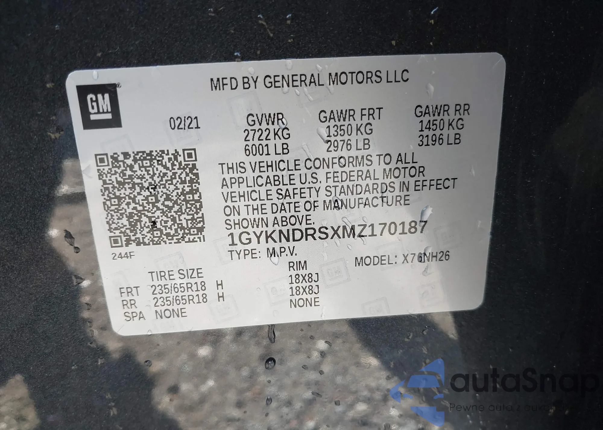 VIN: 1GYKNDRSXMZ170187