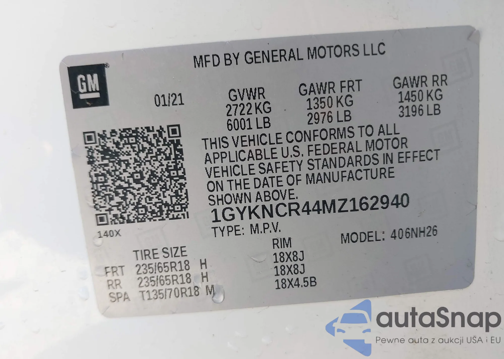 VIN: 1GYKNCR44MZ162940