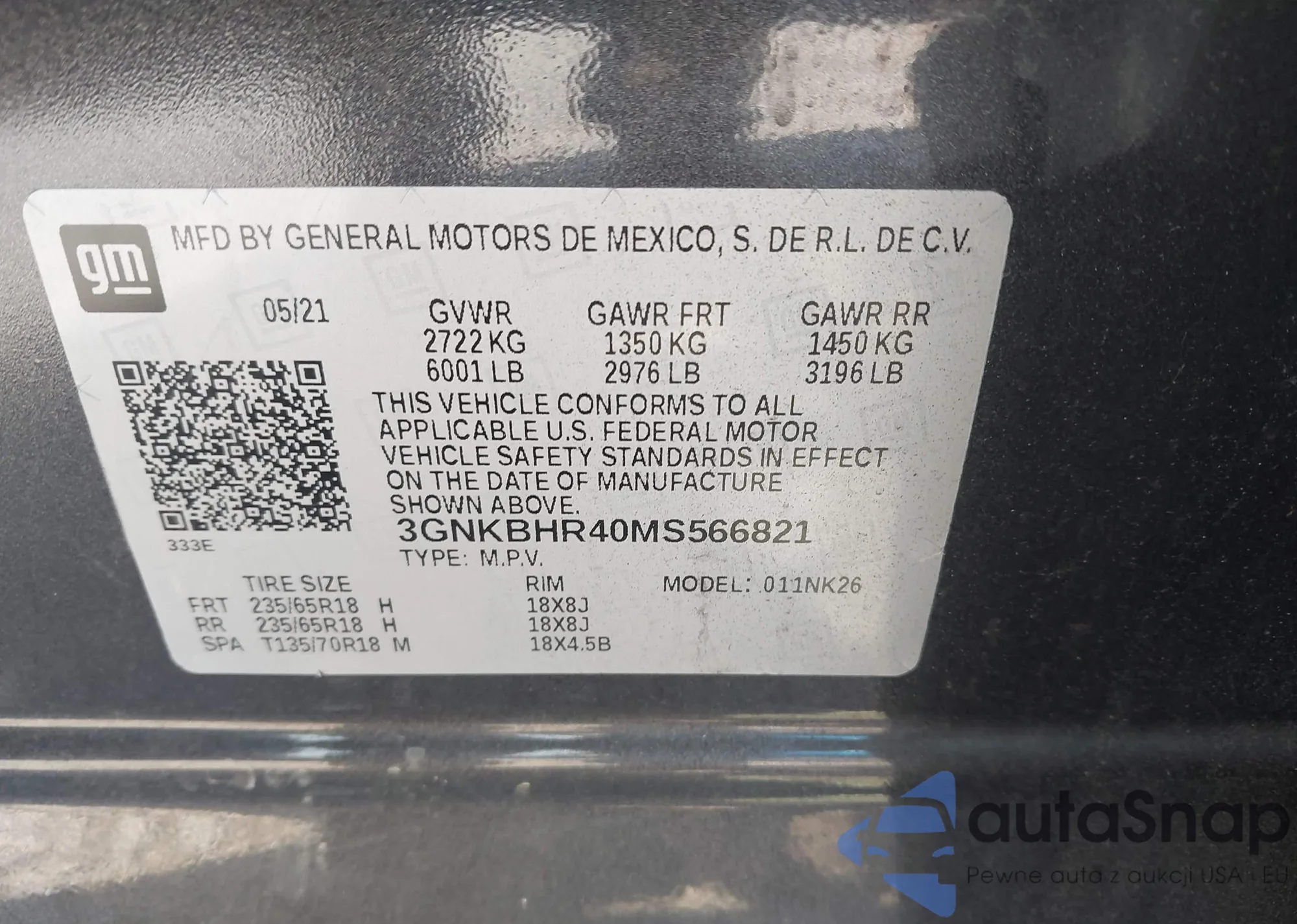 VIN: 3GNKBHR40MS566821