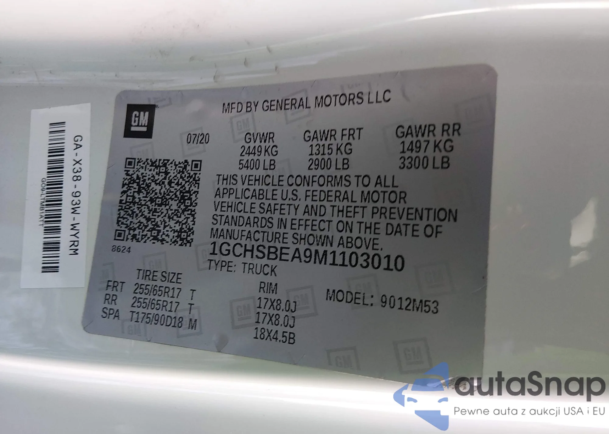 1GCHSBEA9M1103010 IAAI