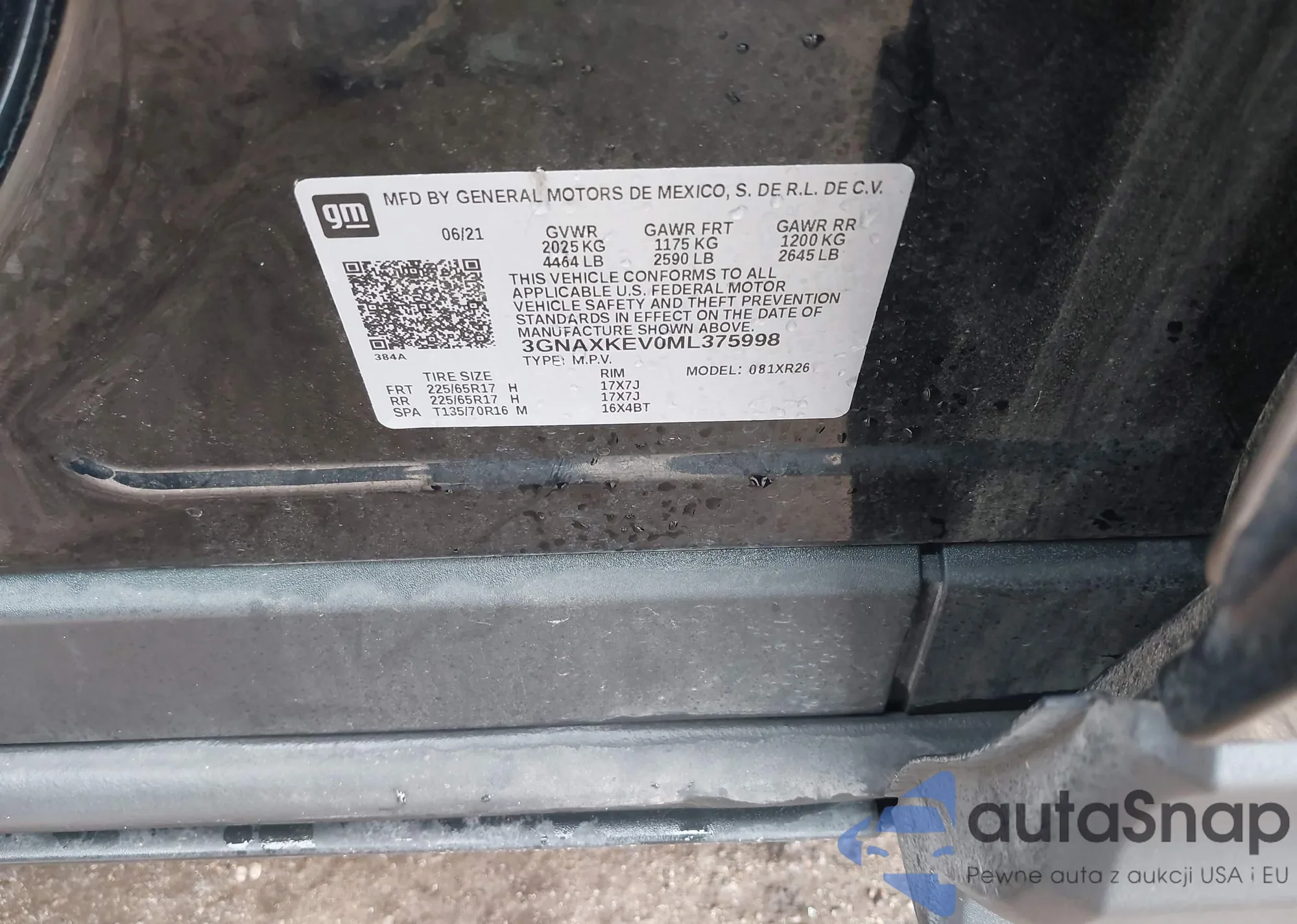 VIN: 3GNAXKEV0ML375998