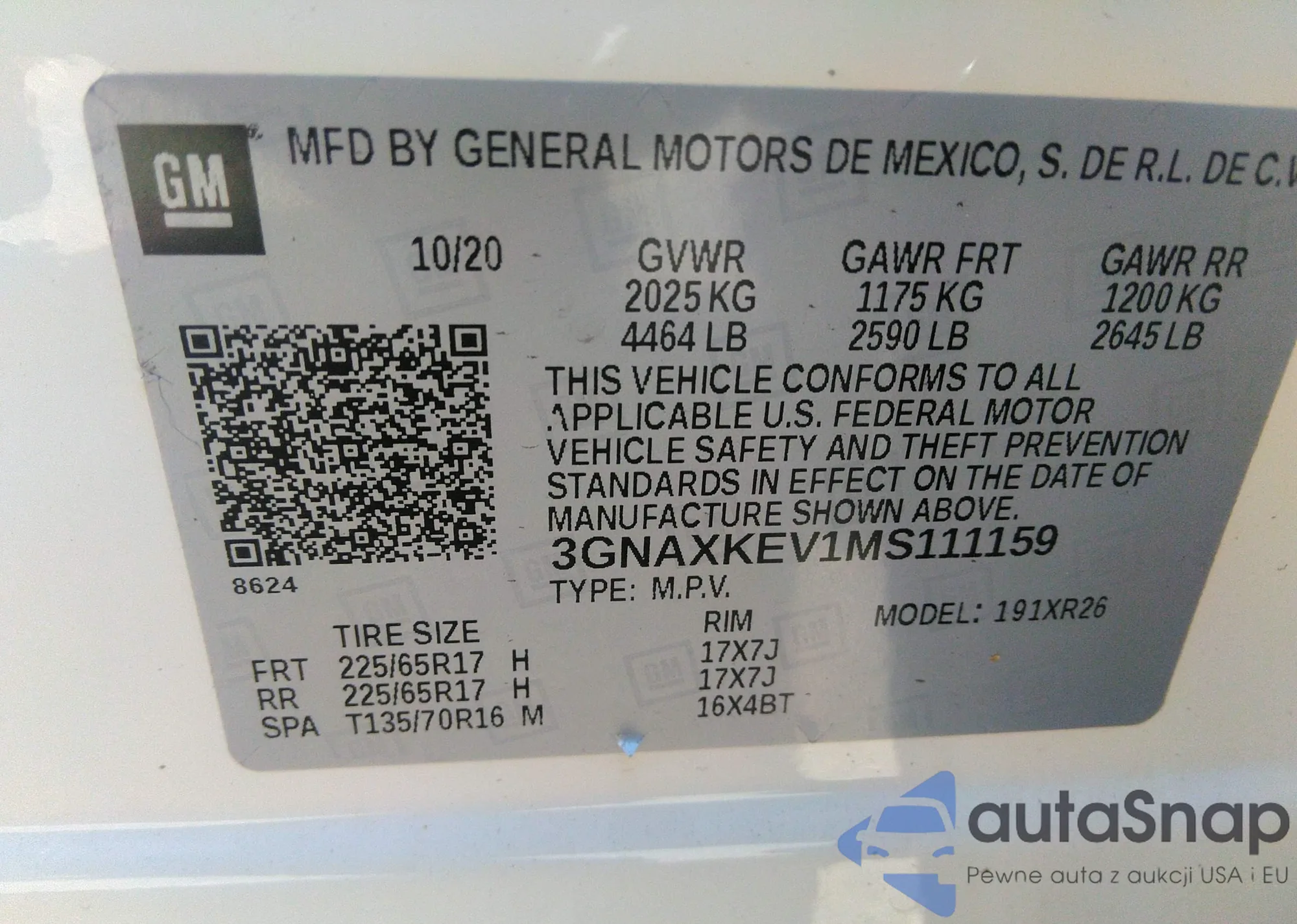VIN: 3GNAXKEV1MS111159