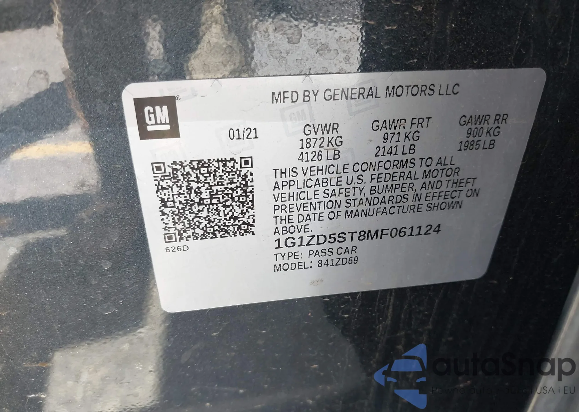 VIN: 1G1ZD5ST8MF061124