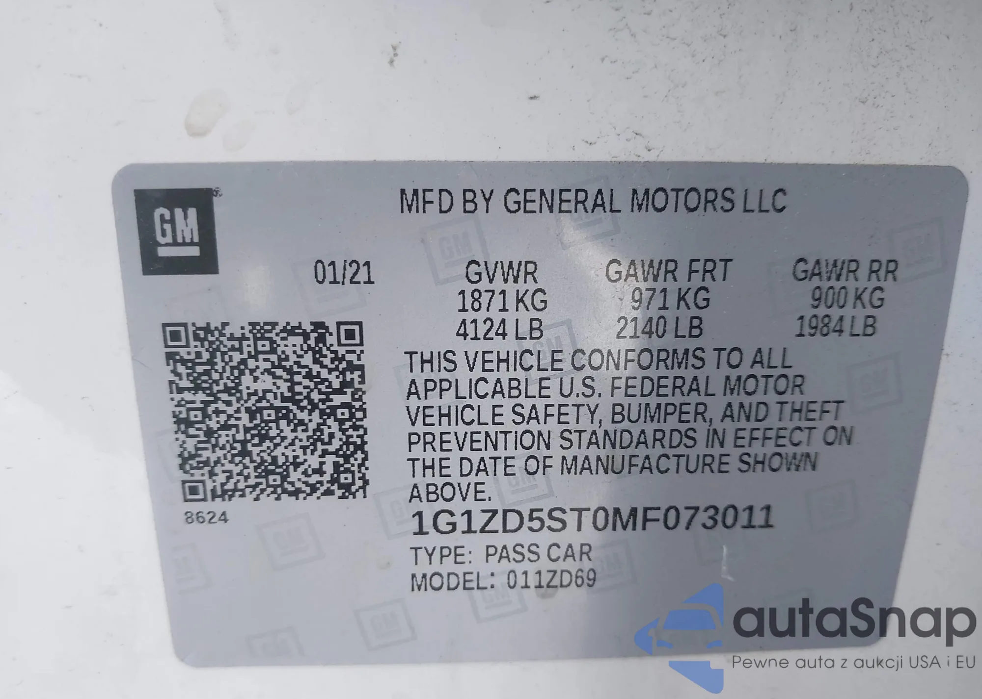 Samochód Chevrolet Malibu 2021 (VIN 1G1ZD5ST0MF073011) nie był wcześniej licytowany. Dokumenty są czyste, przebieg odpowiada lub jest niższy niż średnia rynku. Sprzedaje go firma ubezpieczeniowa – polecamy zakup. Dostawa do portu zajmie ok. 6–8 tygodni.