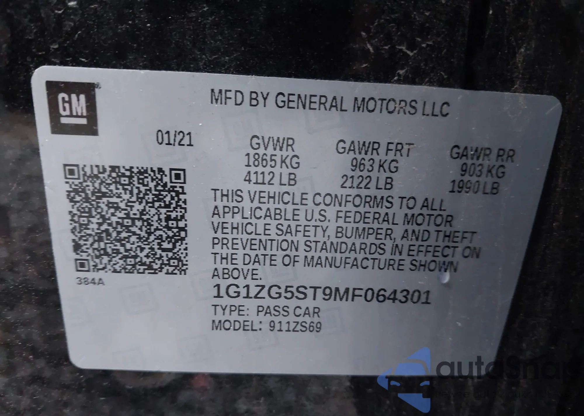 VIN: 1G1ZG5ST9MF064301