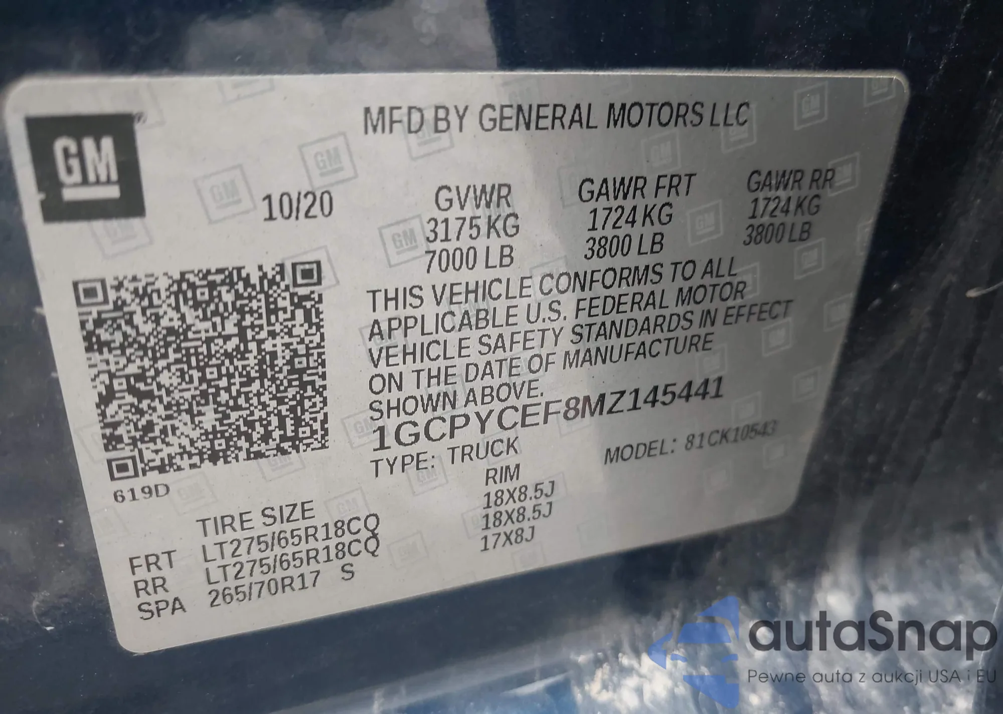 VIN: 1GCPYCEF8MZ145441