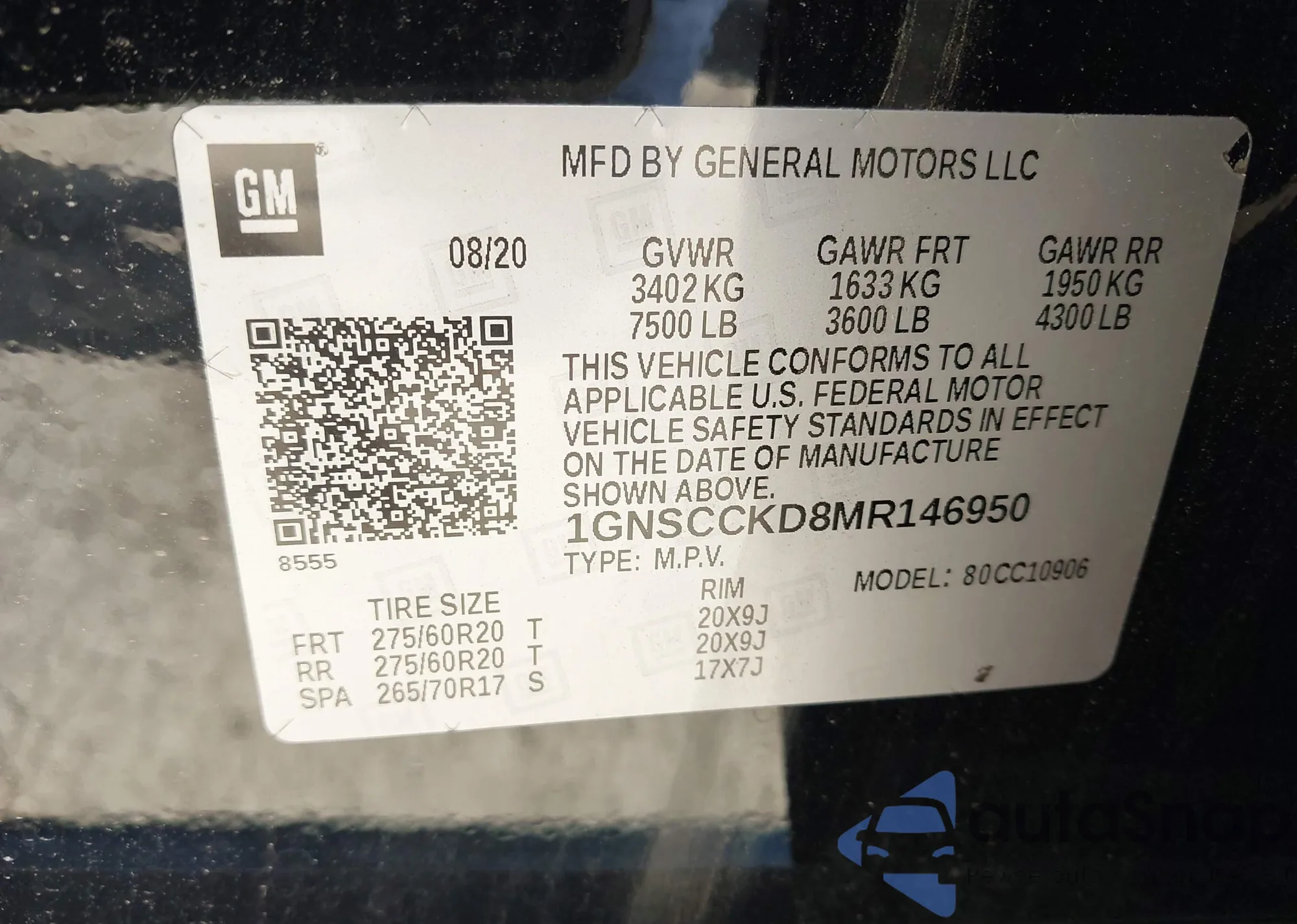 VIN: 1GNSCCKD8MR146950