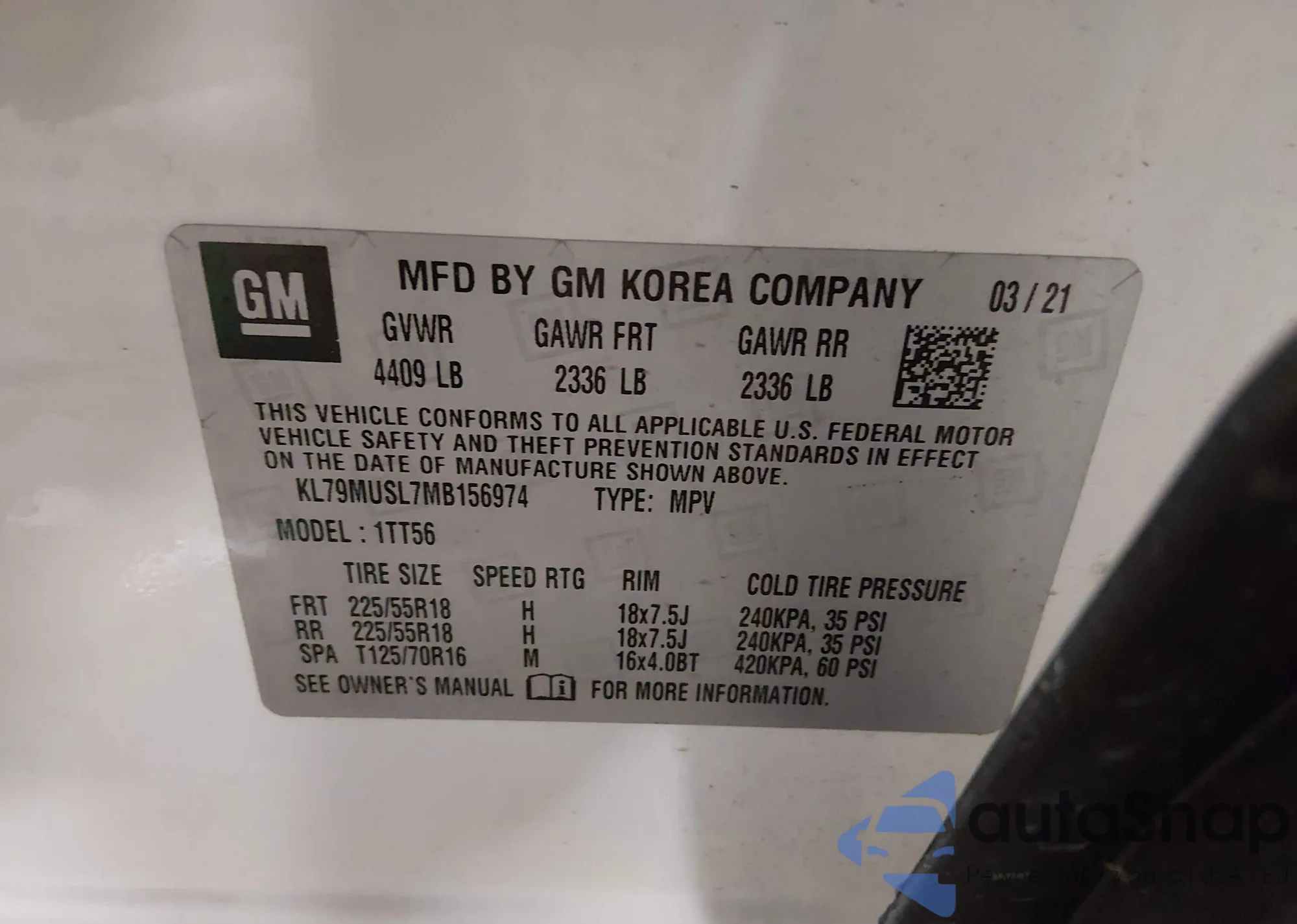 Samochód Chevrolet TrailBlazer 2021 (VIN KL79MUSL7MB156974) nie był wcześniej licytowany. Dokumenty są czyste, przebieg odpowiada lub jest niższy niż średnia rynku. Sprzedaje go firma ubezpieczeniowa – polecamy zakup. Dostawa do portu zajmie ok. 6–8 tygodni.