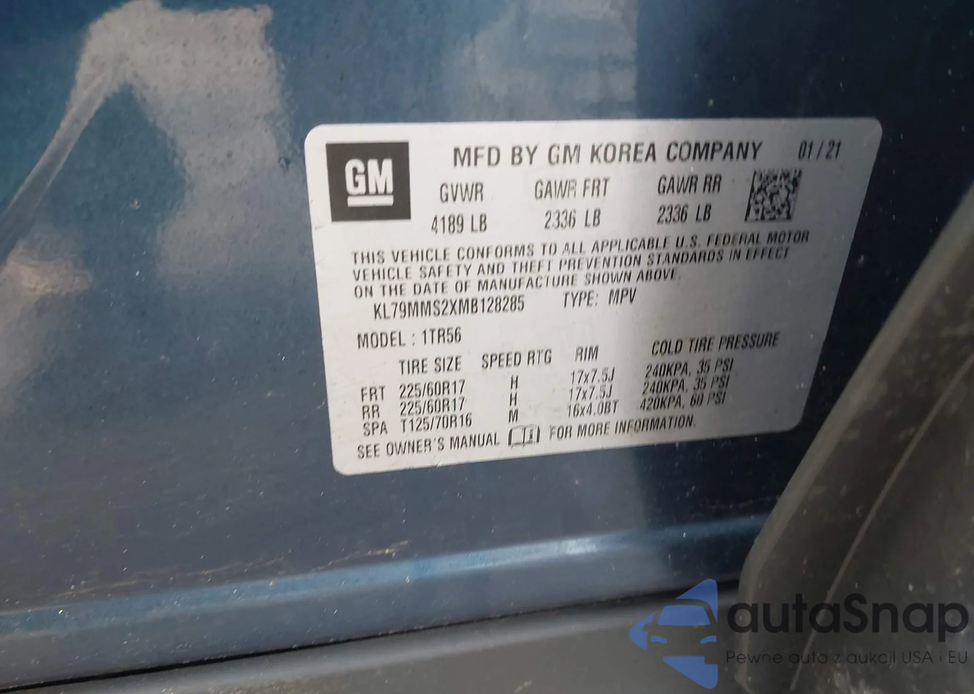 VIN: KL79MMS2XMB128285