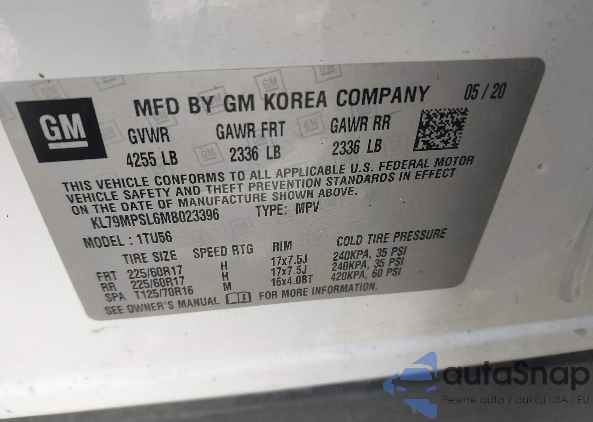 VIN: KL79MPSL6MB023396