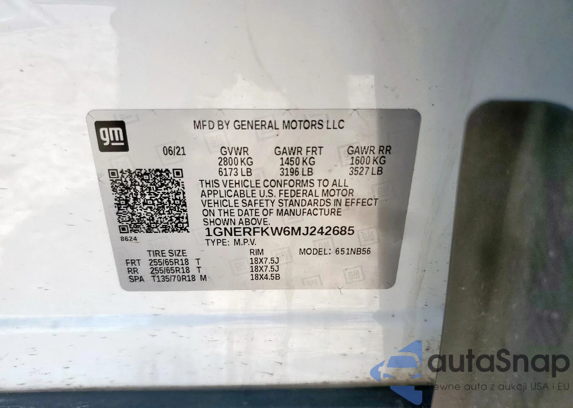 VIN: 1GNERFKW6MJ242685