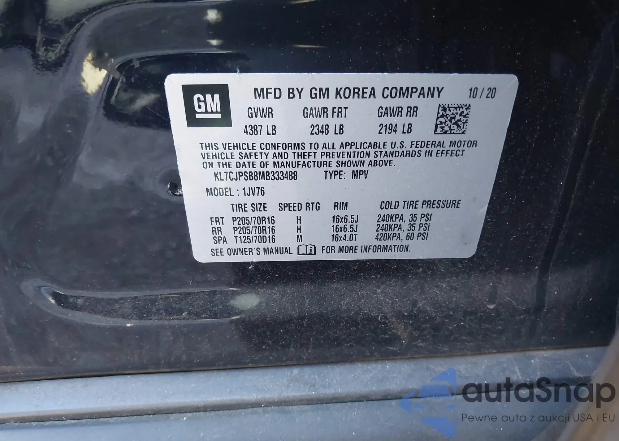 VIN: KL7CJPSB8MB333488