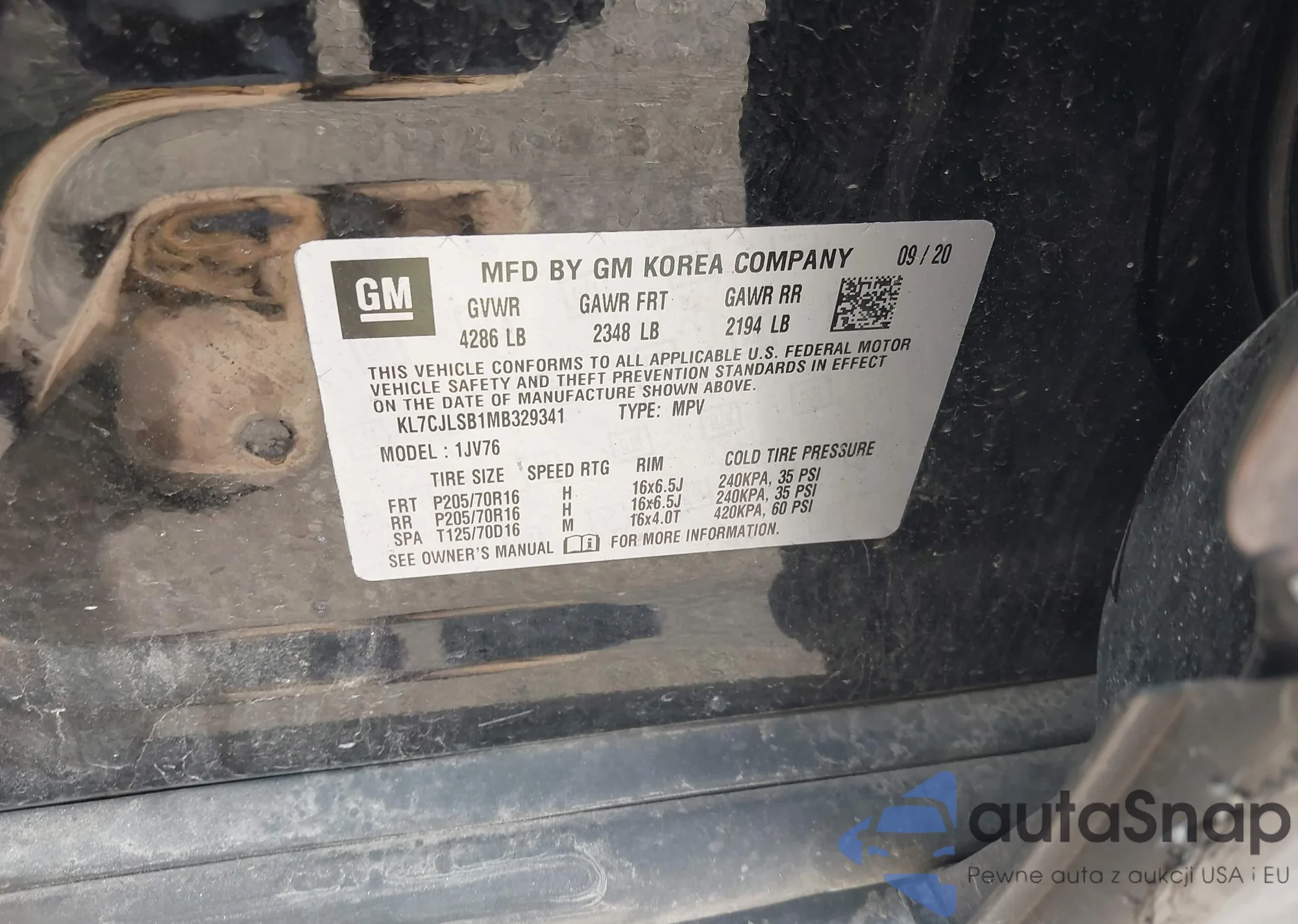 VIN: KL7CJLSB1MB329341