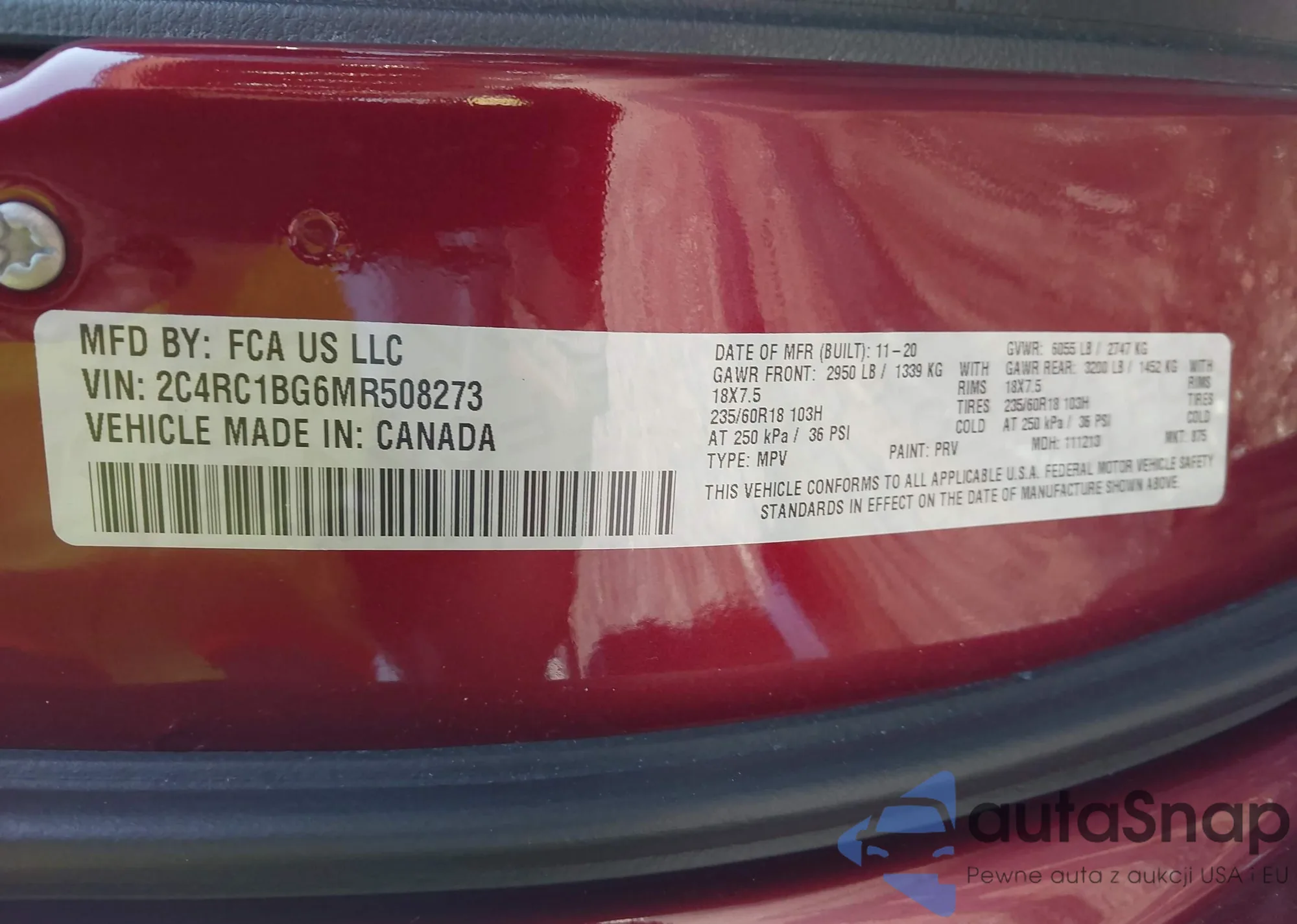 VIN: 2C4RC1BG6MR508273