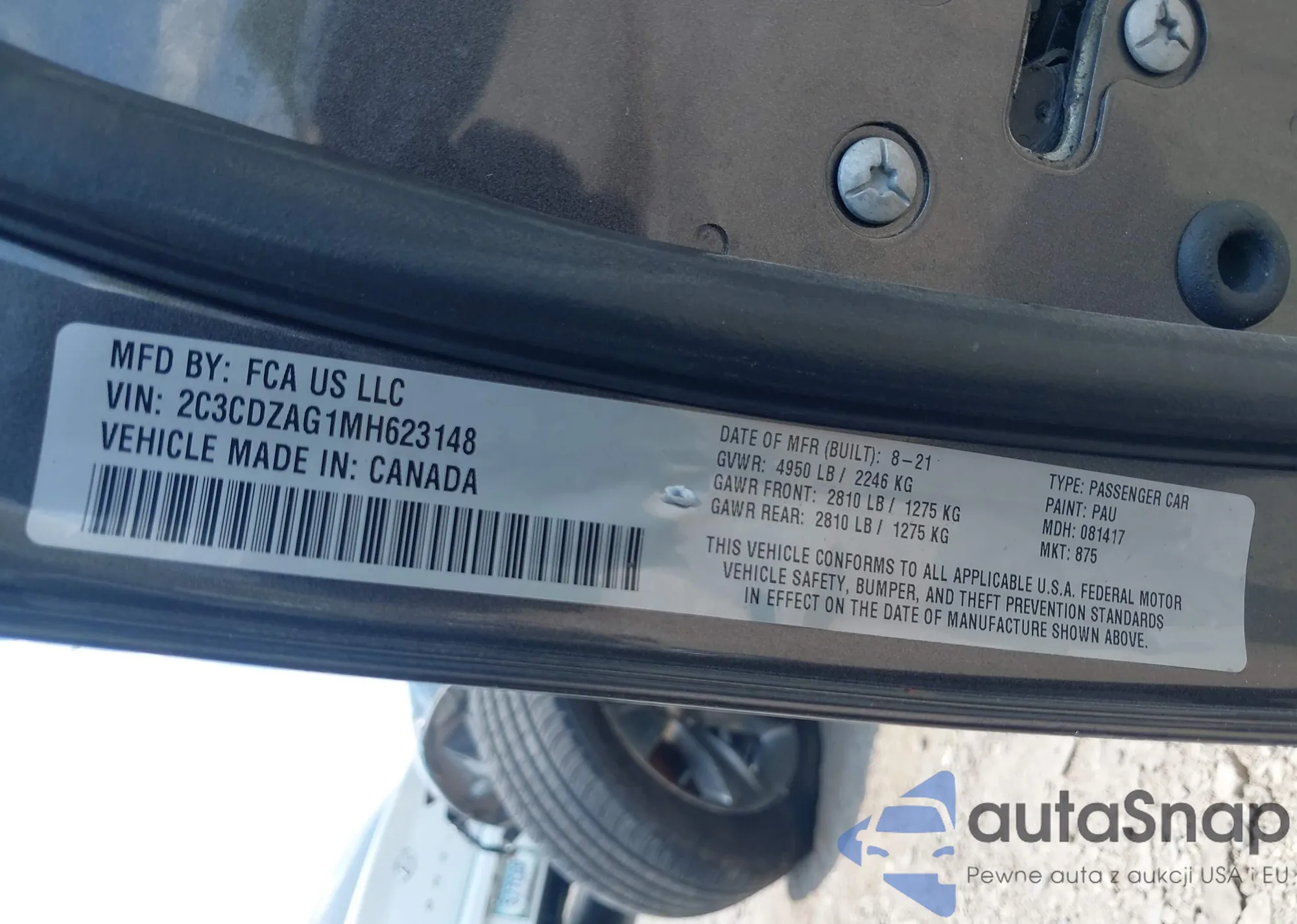 VIN: 2C3CDZAG1MH623148
