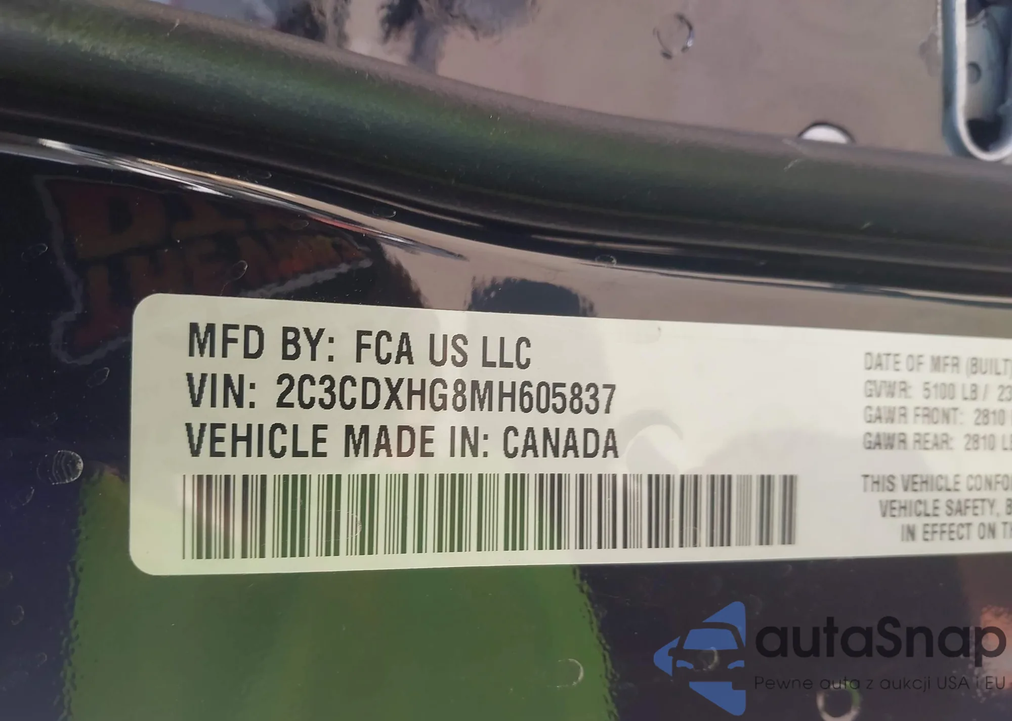 Samochód Dodge Charger 2021 (VIN 2C3CDXHG8MH605837) nie był wcześniej licytowany. Dokumenty są czyste, przebieg odpowiada lub jest niższy niż średnia rynku. Sprzedaje go firma ubezpieczeniowa – polecamy zakup. Dostawa do portu zajmie ok. 6–8 tygodni.