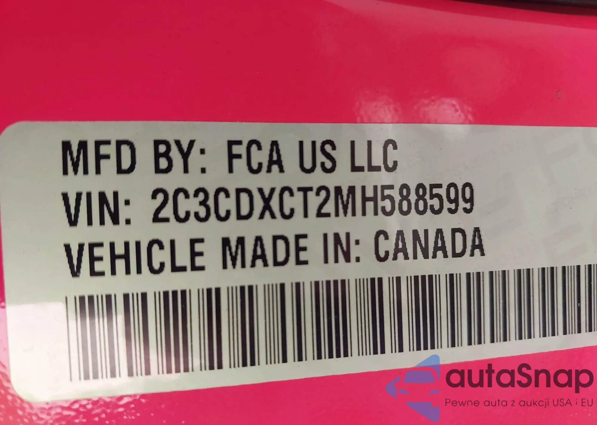 • VIN: 2C3CDXCT2MH588599