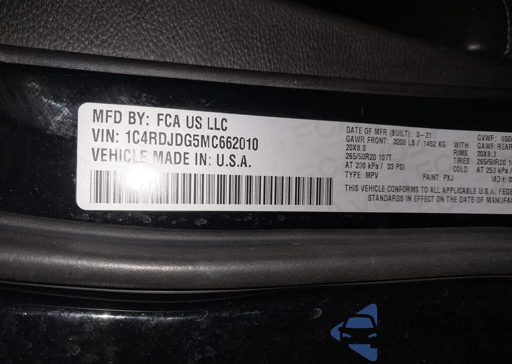 VIN: 1C4RDJDG5MC662010