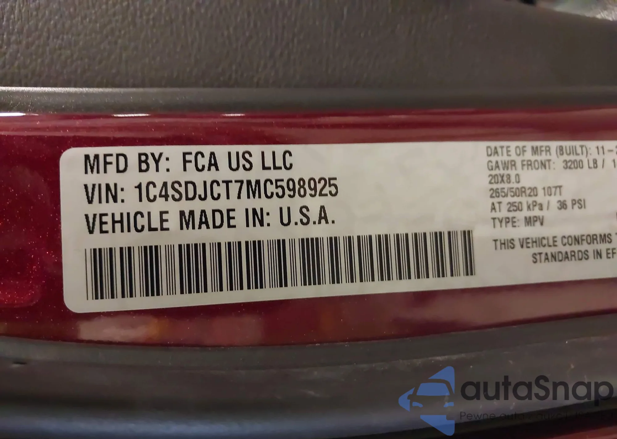 VIN: 1C4SDJCT7MC598925