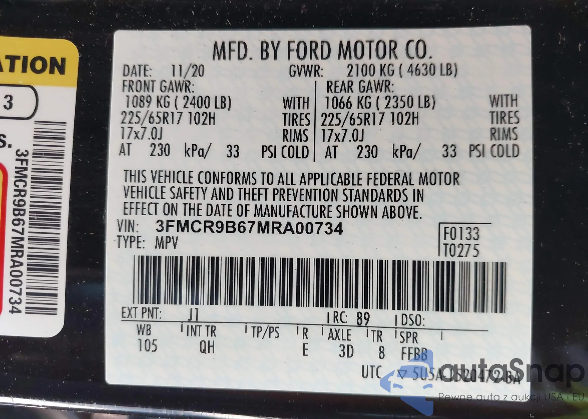 VIN: 3FMCR9B67MRA00734
