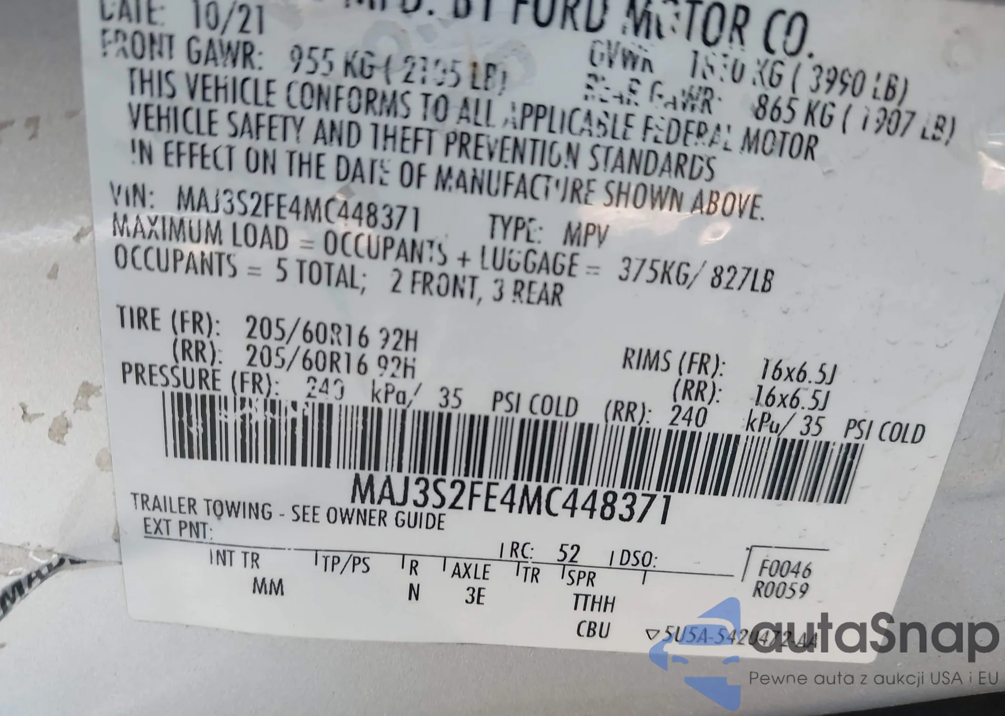 • VIN: MAJ3S2FE4MC448371
