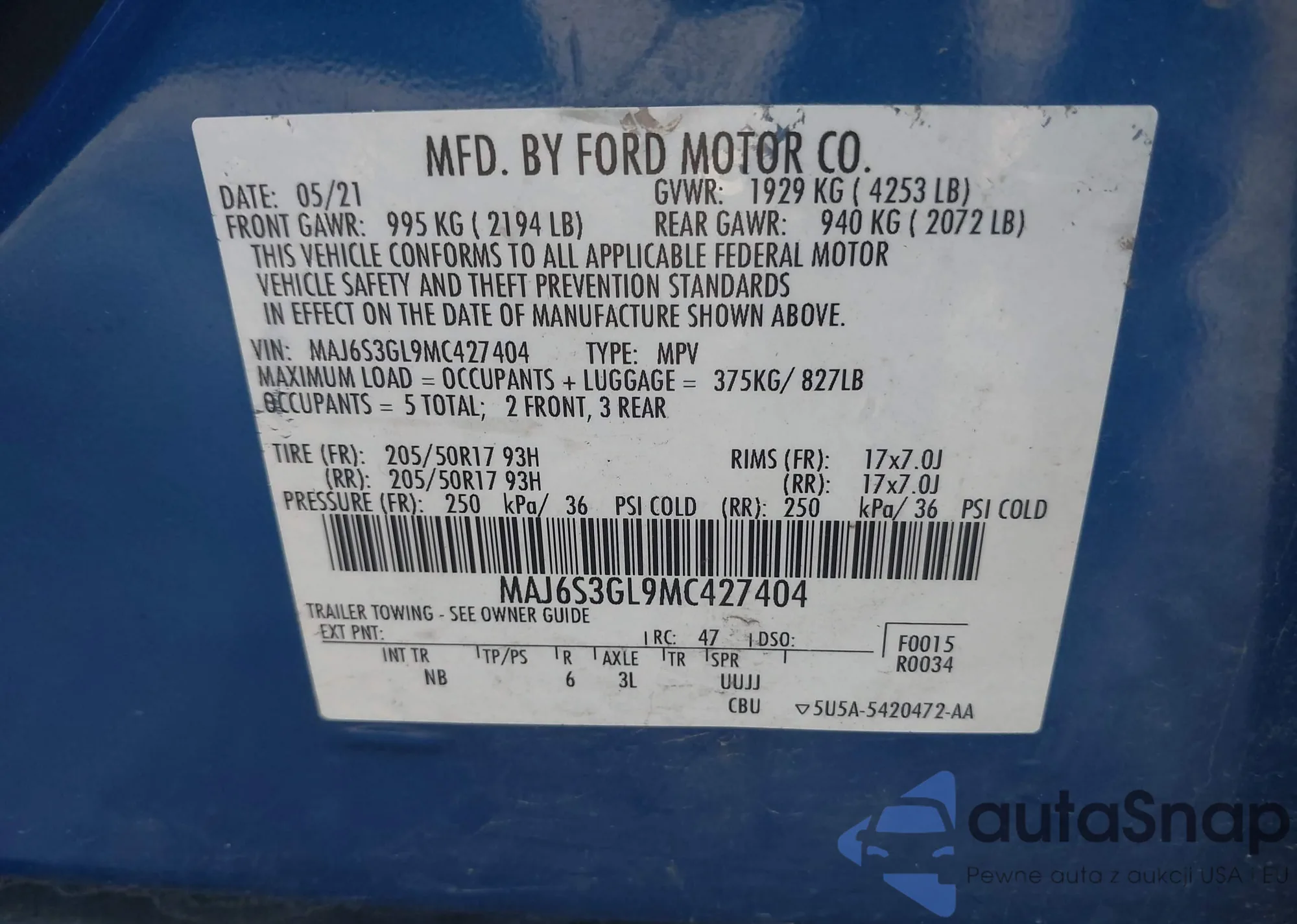 VIN: MAJ6S3GL9MC427404