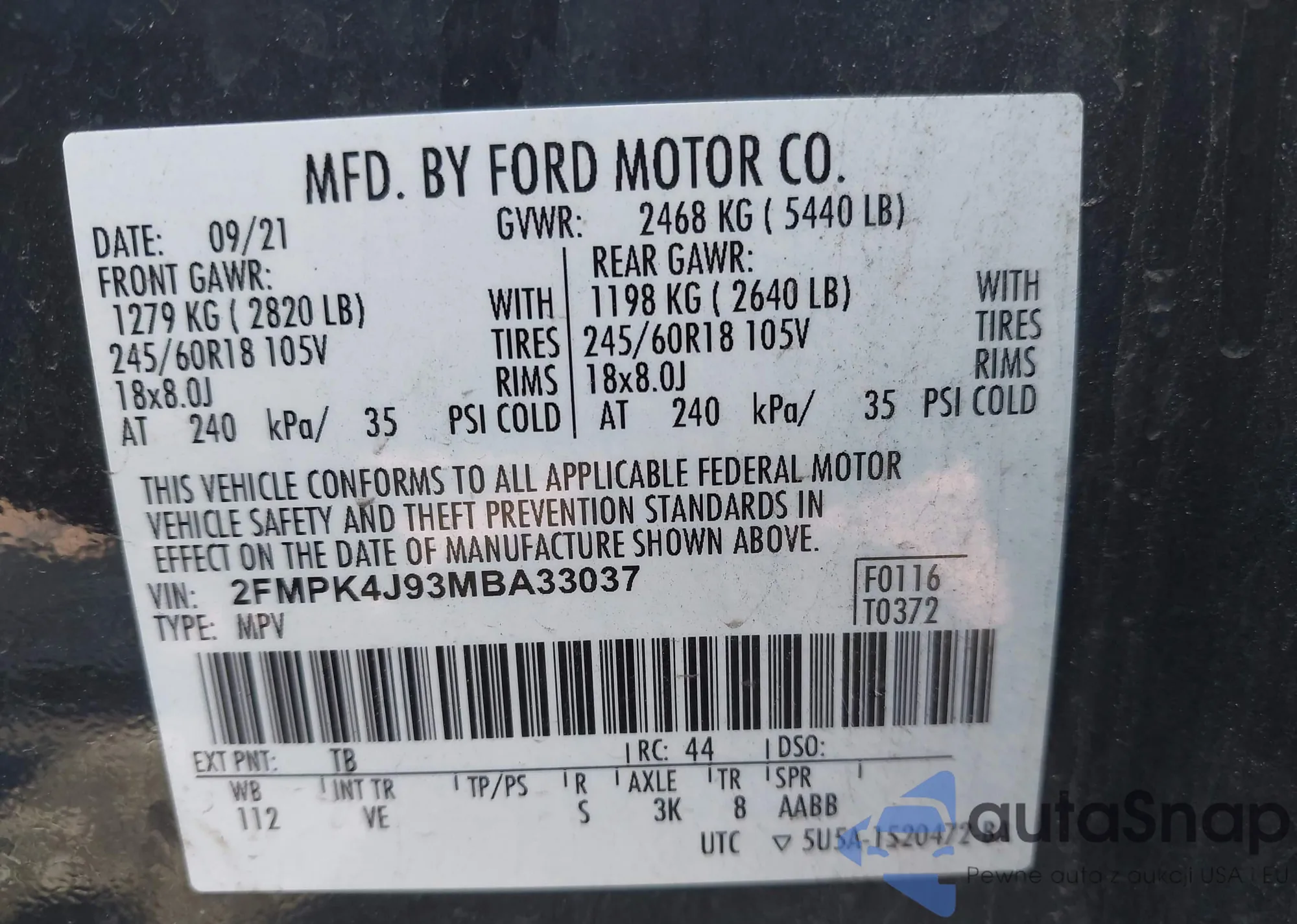 VIN: 2FMPK4J93MBA33037