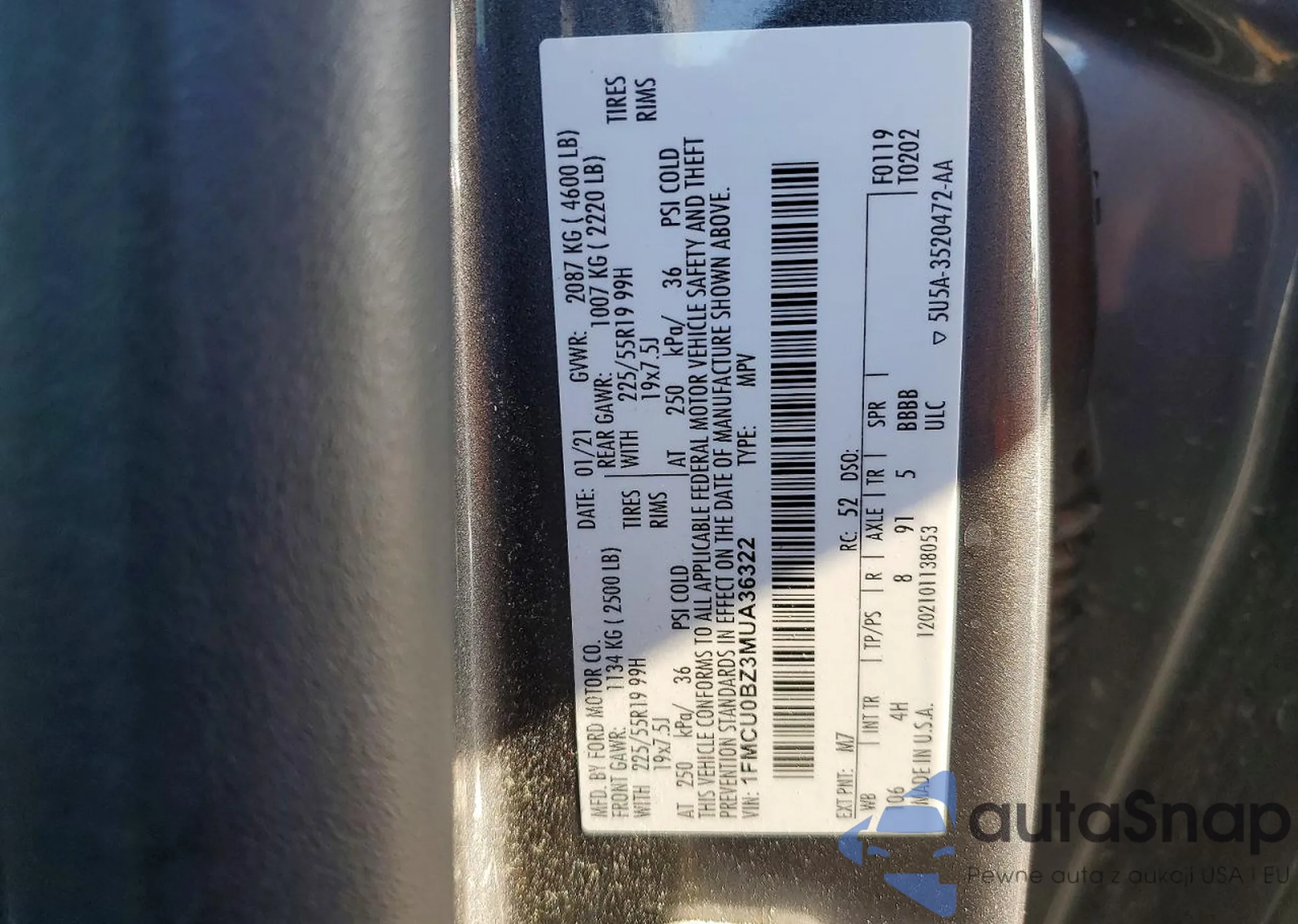VIN: 1FMCU0BZ3MUA36322