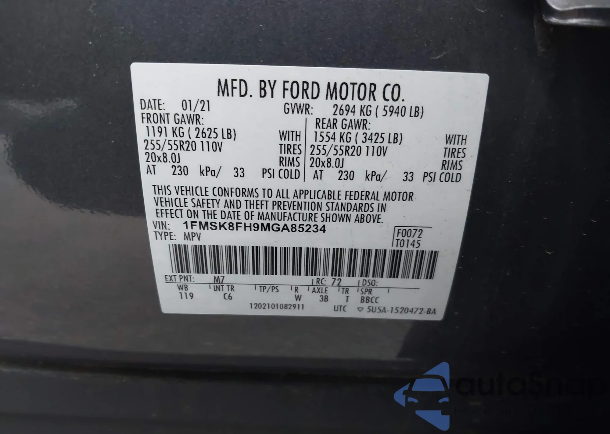 VIN: 1FMSK8FH9MGA85234