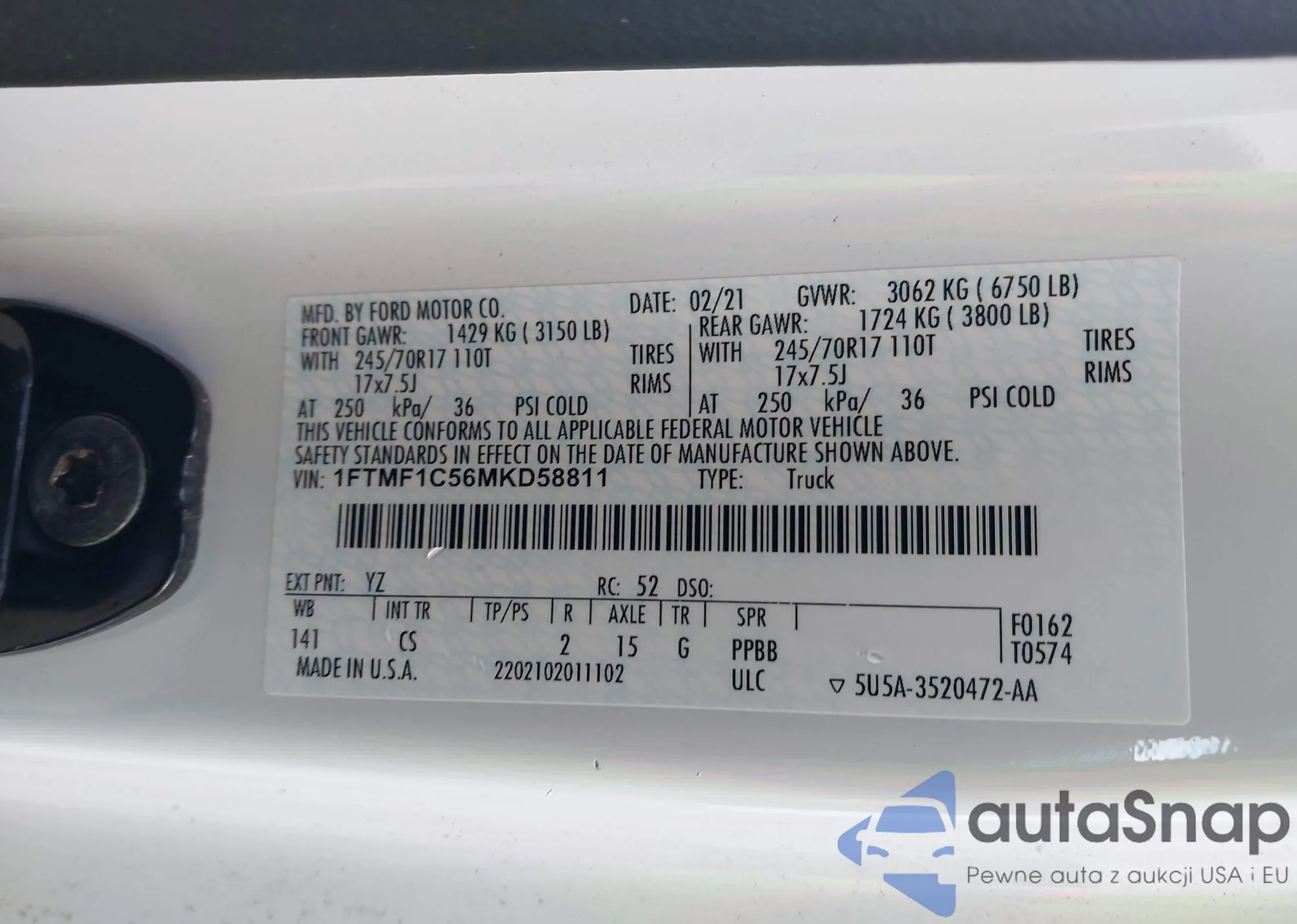 VIN: 1FTMF1C56MKD58811