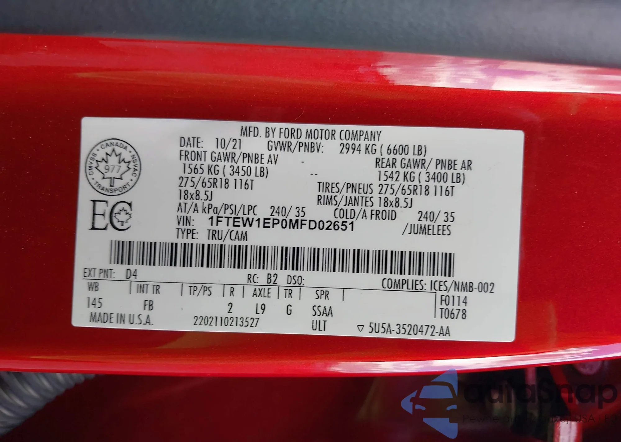 • VIN: 1FTEW1EP0MFD02651